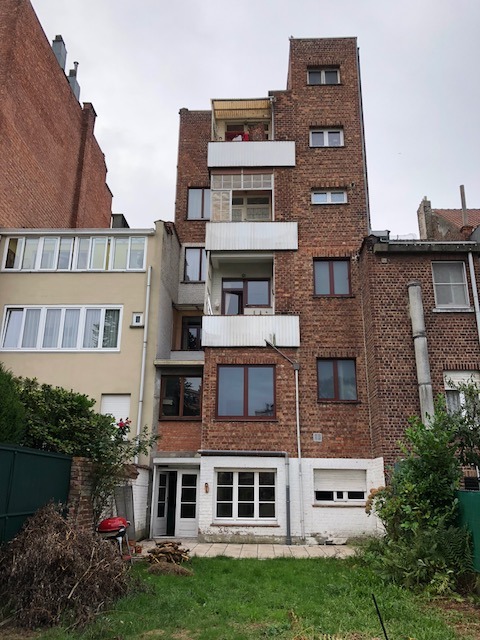 Gelijkvloers appartement van 1937, gerenoveerd in 2010, met een bew. opp. van 75m². Best. uit 1 slaapkamer, bureel, living, eetpl., half ing. keuken, badkamer, terras 12m², tuin 176m² (onderhoud tuin inbegrepen in de prijs) en kelders. Lasten: ind. Vrij. EPC: G 369 (UC: 20141223-0000264598-01-7).