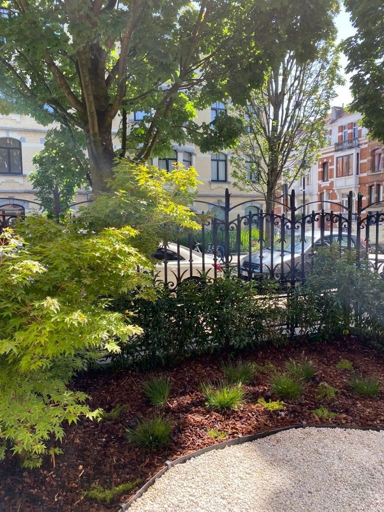 Een groot pluspunt van dit appartement is het exclusieve gebruik van de voortuin, die afgesloten en mooi aangelegd werd met diverse beplanting. Het appartement heeft individuele tellers, en er is een maandelijkse provisie van €70 voor gemeenschappelijke delen en het snoeien van de haag.