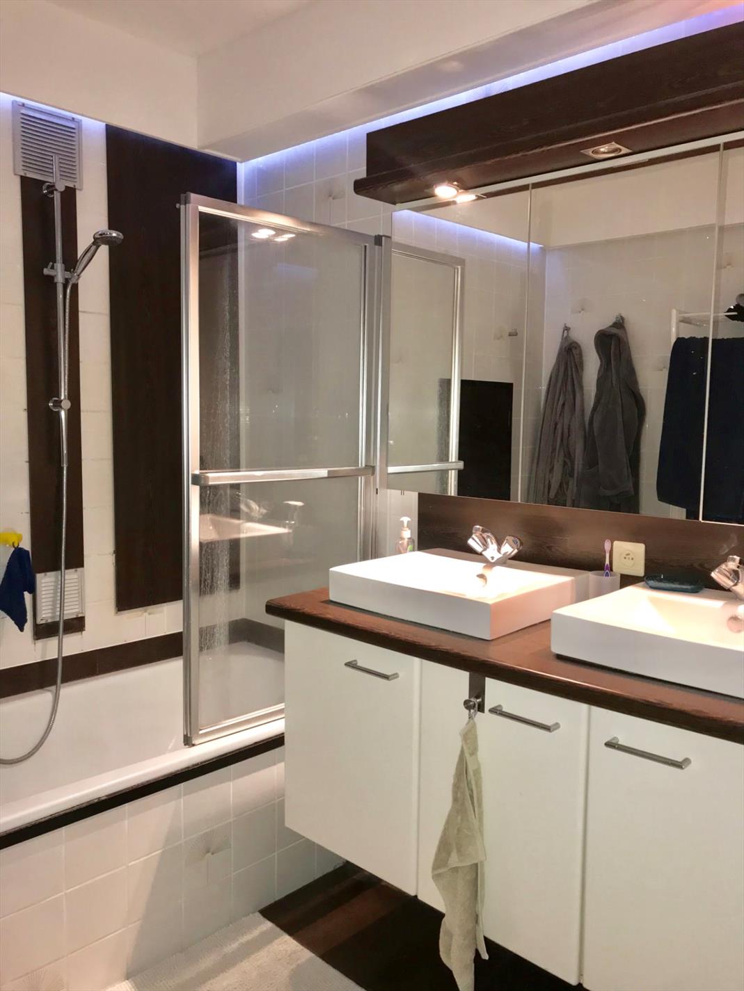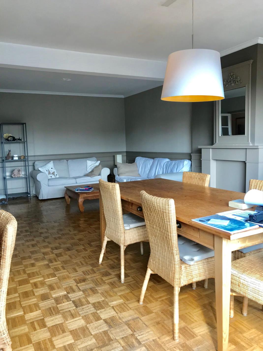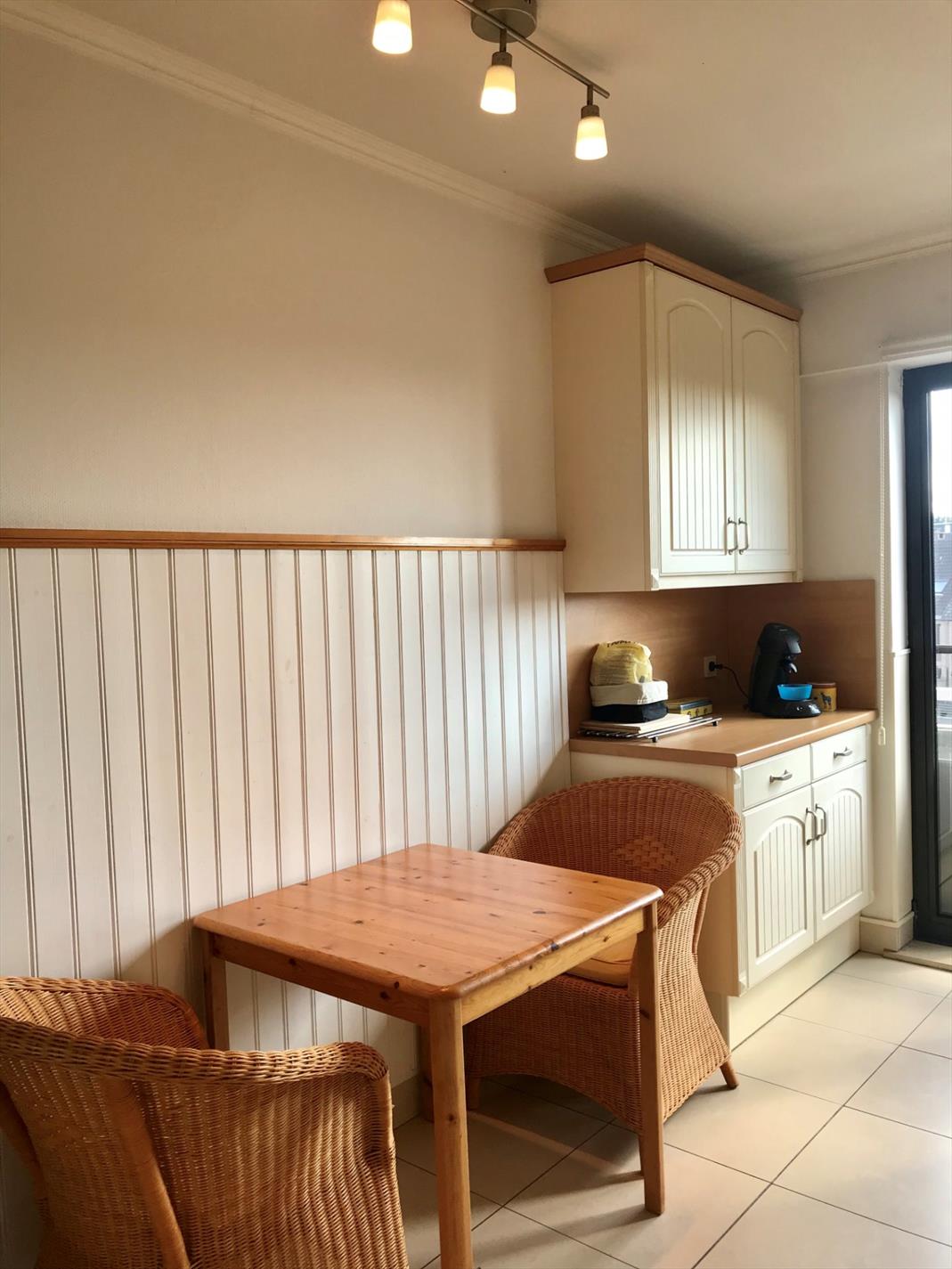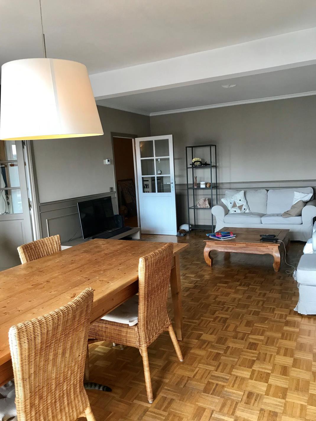 Appartement van 1987 gelegen op het 3e verdiep met lift, bestaande uit: inkomhal met berging en toilet, leefruimte met eethoek en zonnig terras, volledig ingerichte keuken, 2 slaapkamers waaronder één met dressing/bureau-ruimte, badkamer met ligbad, ruime garage en kelder. €100 lasten voor de gemeenschappelijke delen en een provisie van €50 voor het water.