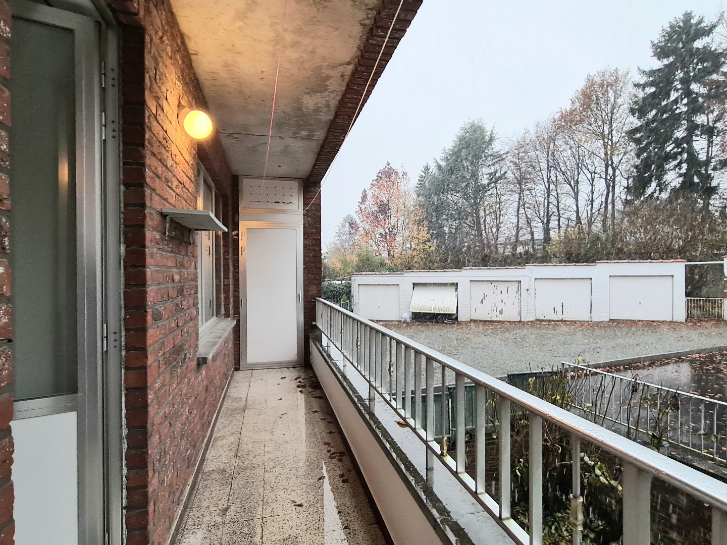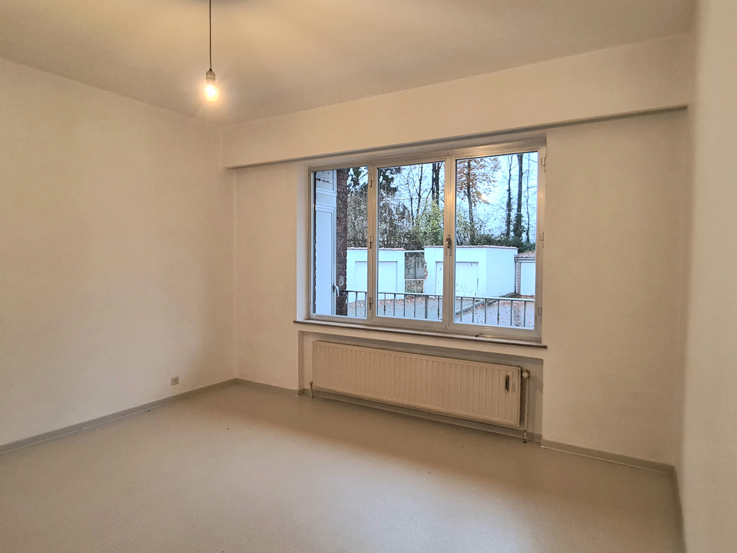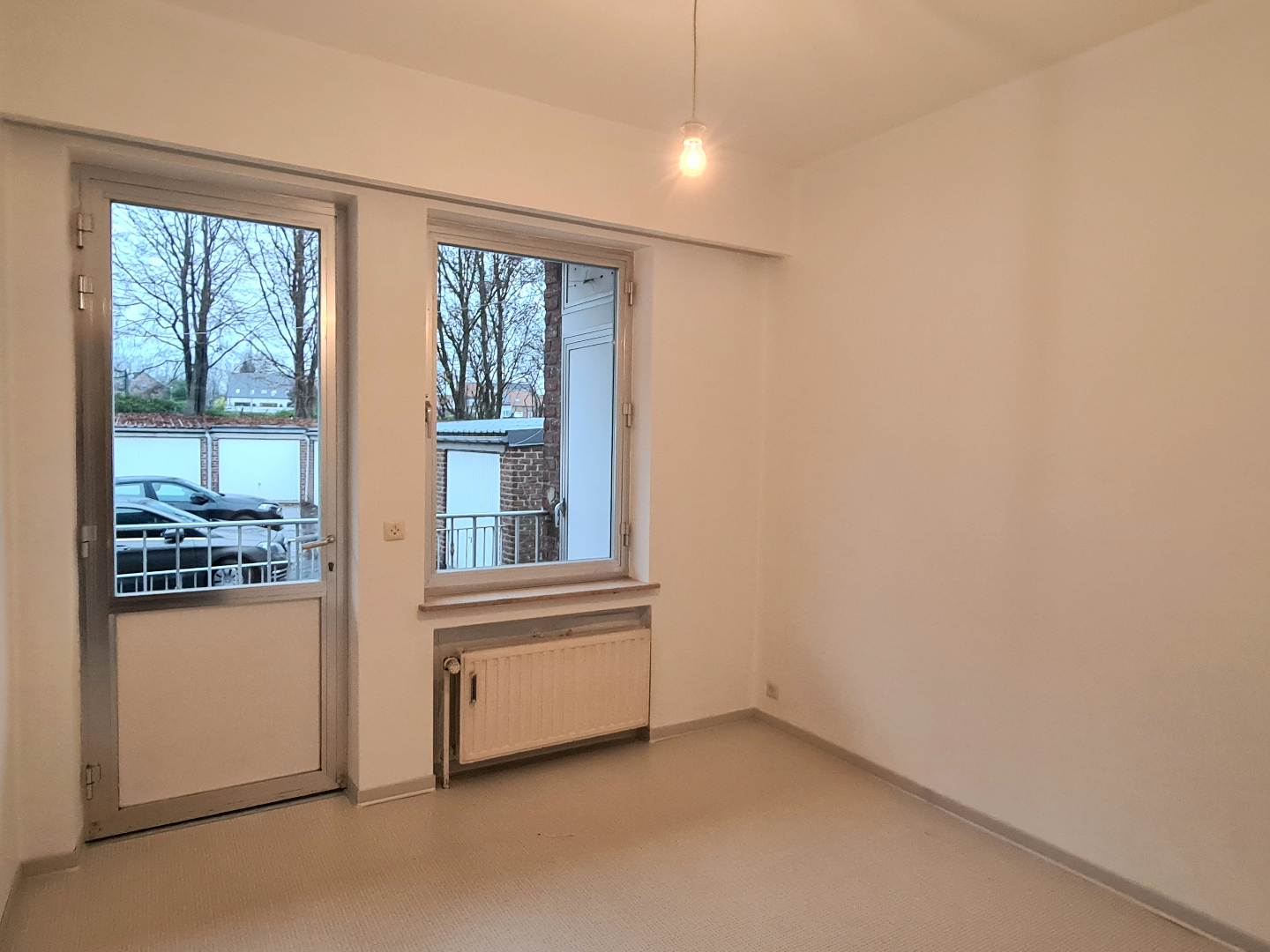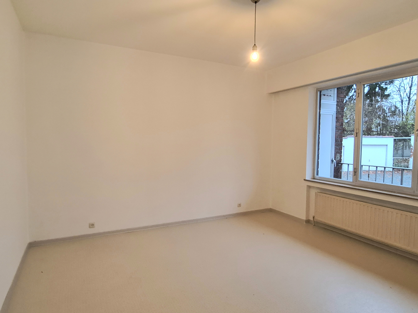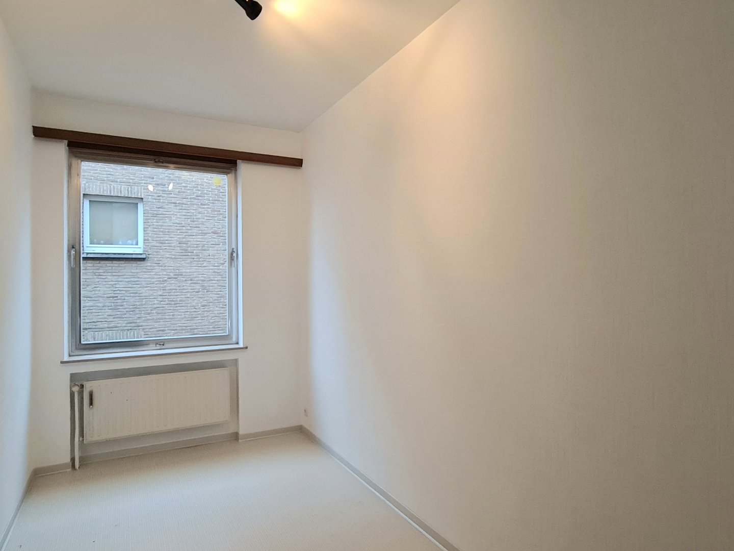 BEZOEKAANVRAGEN ENKEL ONLINE VIA WWW.IMMO-WEMMEL.BE !! Gezellig appartement gelegen op de eerste verdieping (geen lift), vlakbij winkels, openbaar vervoer en mooi gemeentelijk park. Het appartement is ingedeeld als volgt: inkomhal met aparte Wc, woonkamer, keuken (niet-ingericht), 2 slaapkamers (16m² en 8,8m²) en een bureau (7m²), een badkamer met ligbad, terras met berging. Een garagebox is beschikbaar aan 50€ per maand. Onmiddellijk beschikbaar. Lasten: provisie €100/maand voor gemeenschappelijke delen, verwarming, warm en koud water.