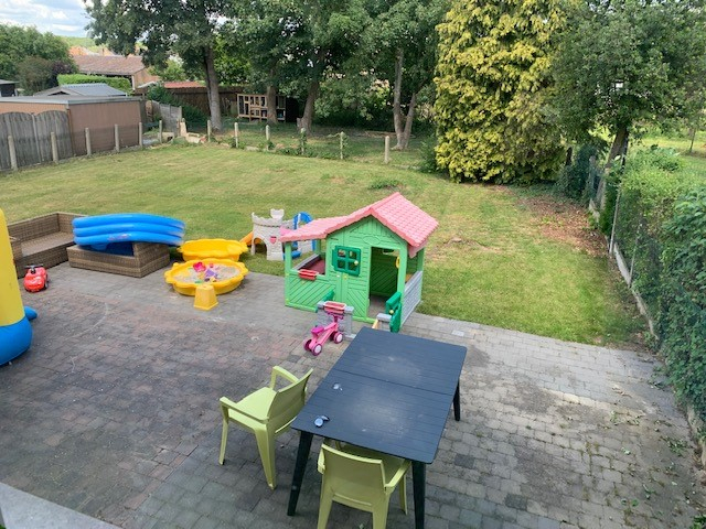 Gelegen in het centrum van Wolvertem, een appartement bestaande uit living, keuken, 2 slaapkamers, douchekamer. Er is een terras met tuin. Op het gelijkvloers bevindt zich een garagebox en een bureel. Individuele tellers.