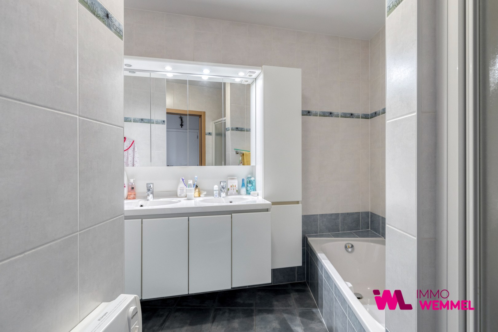 Appartement AII2 is een instapklaar en verzorgd appartement, gelegen in de Koning Albertstraat in het centrum van Merchtem, op wandelafstand van winkels, openbaar vervoer en alle dagelijkse voorzieningen. Het gebouw dateert van 2006 en het appartement bevindt zich op de tweede verdieping, rechts kijkende naar het gebouw.