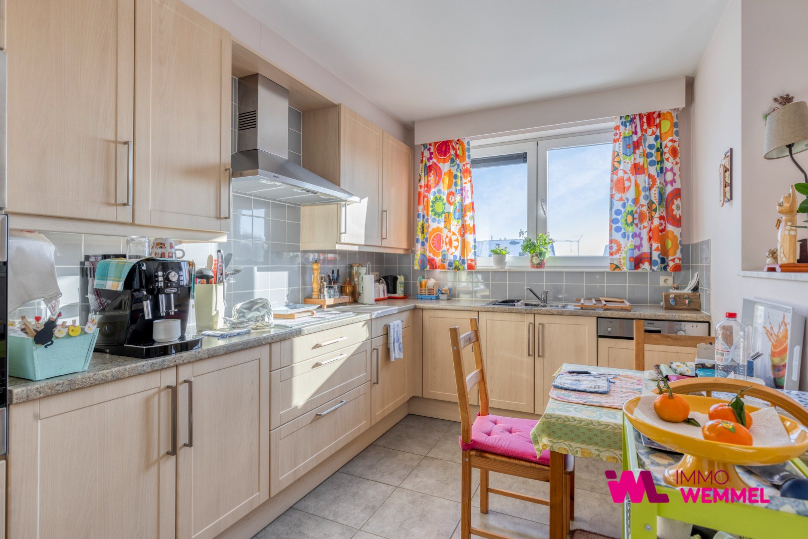 Bij het binnenkomen is er een inkomhal die toegang geeft tot een afzonderlijk toilet, de badkamer en de verschillende leefruimtes. De lichtrijke living sluit aan op een open, volledig ingerichte keuken met een praktische berging, wat zorgt voor extra comfort en voldoende opbergruimte. Het appartement beschikt over twee volwaardige slaapkamers en een aangenaam terras, ideaal om rustig te genieten.