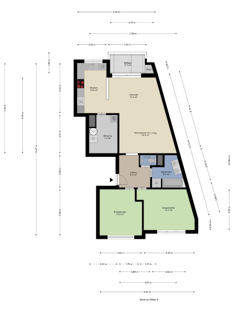 | Slaapkamers: | 2 (13.9 m², 15.1 m²) |