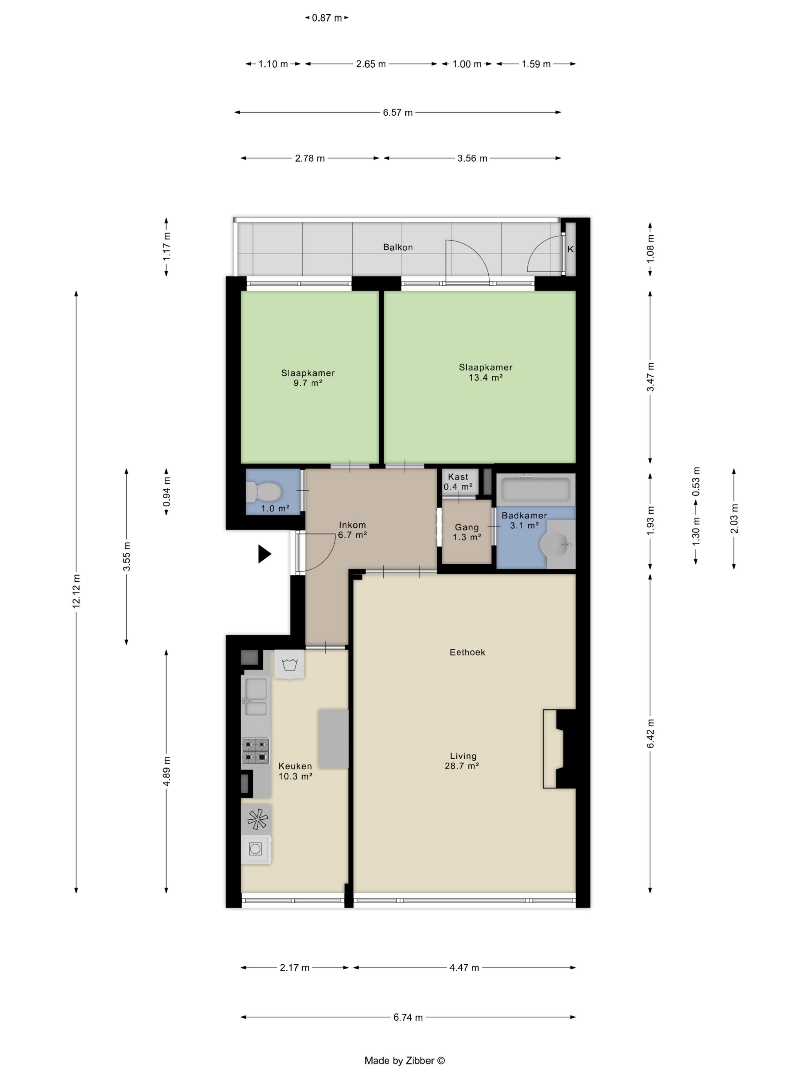 Slaapkamers:2 (9.7 m², 13.4 m²)