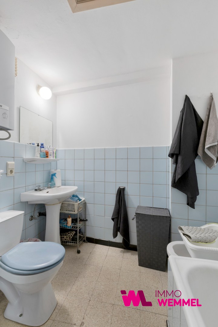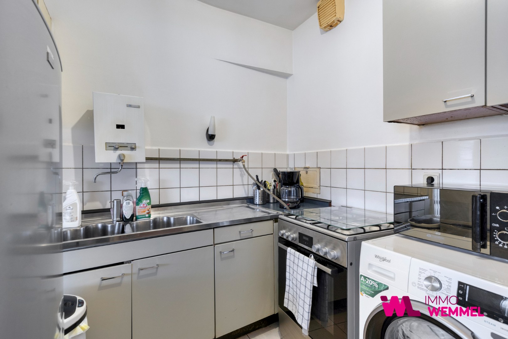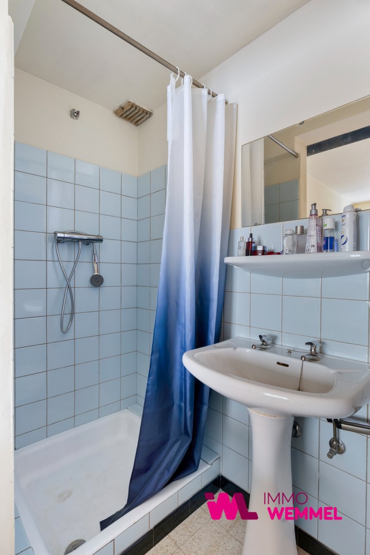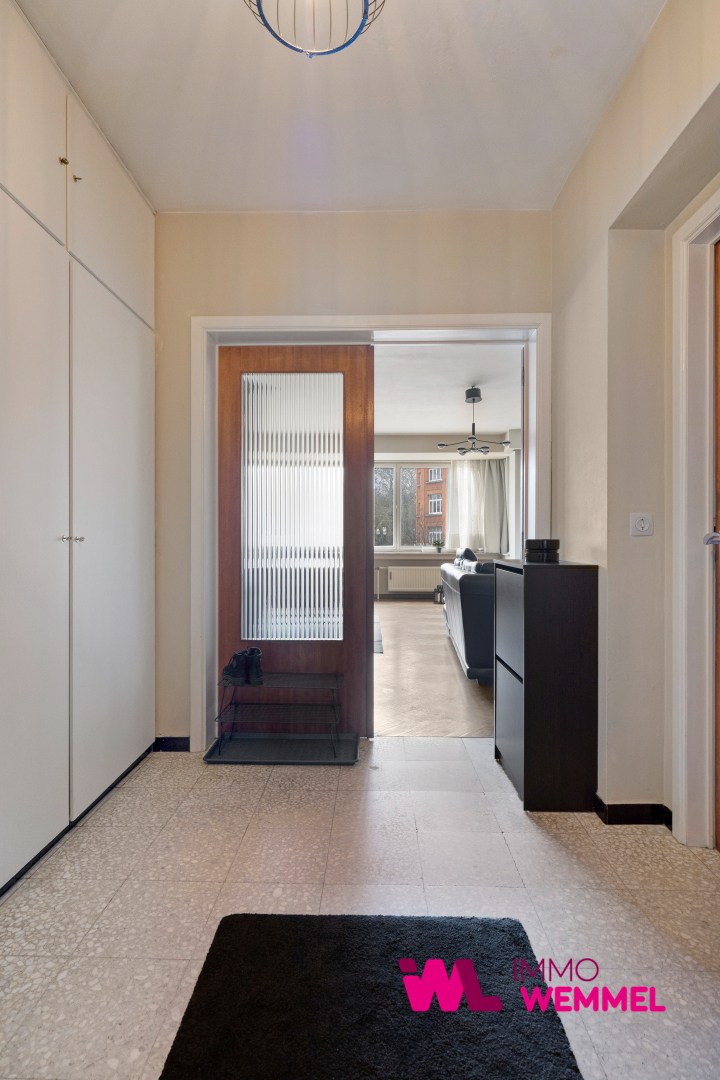 Het appartement is gelegen op de tweede verdieping van een gebouw met lift uit 1966 en is momenteel verhuurd. Via de inkomhal met ingemaakte vestiairekast en apart toilet komt u binnen in de woning. De leefruimte bestaat uit een woonkamer met aansluitende keuken en is praktisch ingedeeld. Het appartement beschikt over twee slaapkamers, waarvan de kleinste toegang heeft tot een eigen douchekamer. Daarnaast is er een aparte badkamer met ligbad, wastafel en een bijkomend toilet. Tot het appartement behoort ook een private kelder. Het EPC van het appartement heeft label C. Het gebouw wordt beheerd door een syndicus.