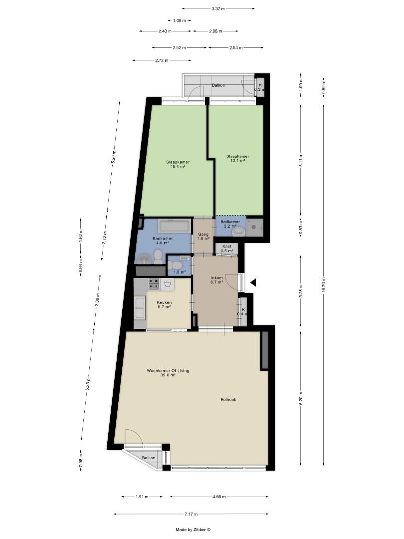 | Slaapkamers: | 2 (15.4 m², 12.1 m²) |