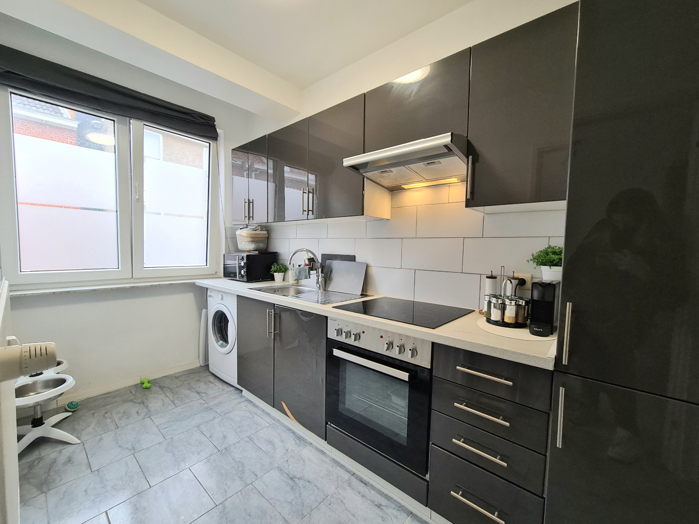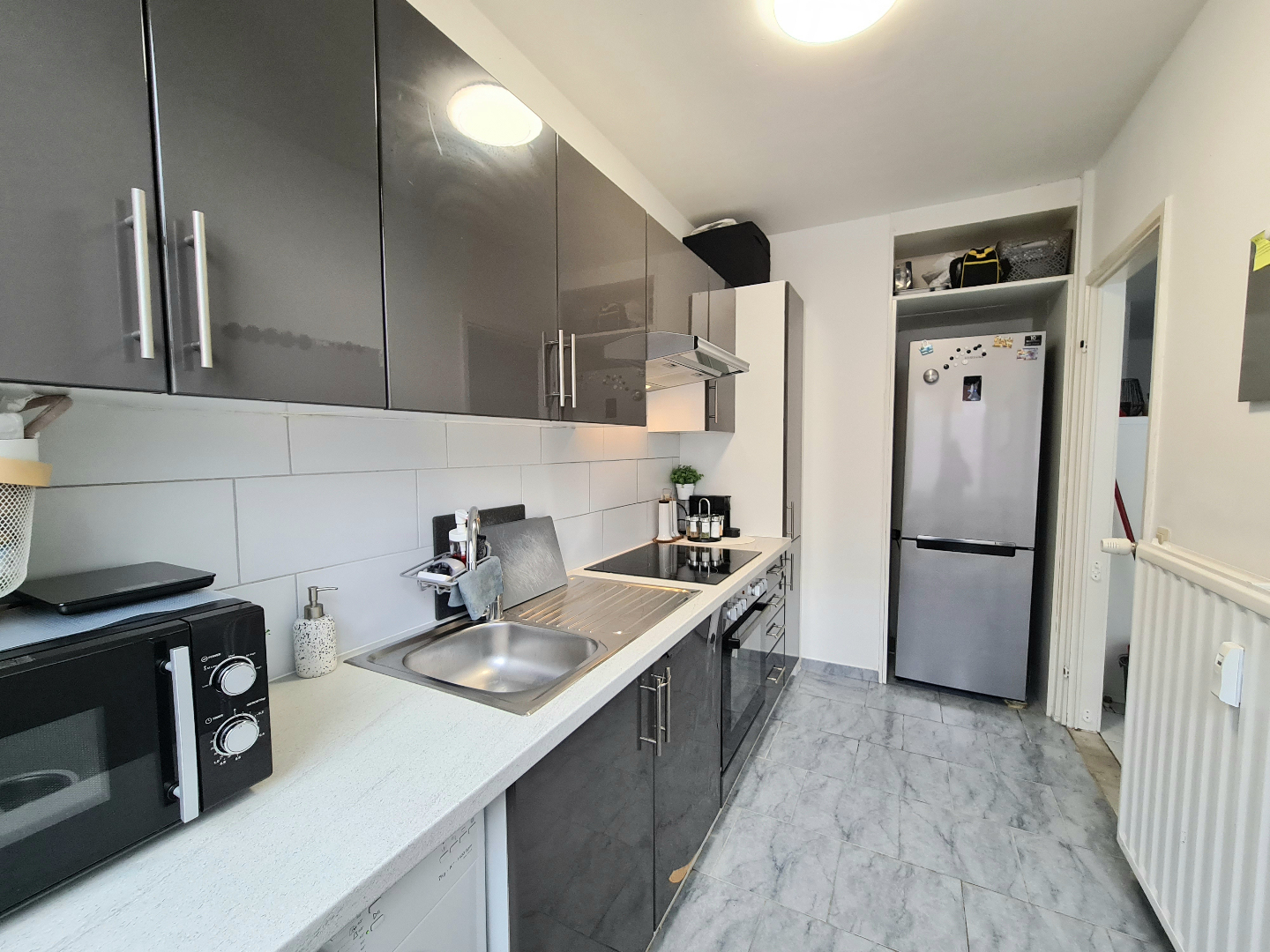 Mooi appartement van 75m² gelegen in het centrum van Wemmel , vlakbij het gemeentelijk park, winkels en openbaar vervoer. Het appartement is gelegen op de eerste verdieping (zonder lift), en bestaat uit: een inkomhal met beveiligde deur, berging, woonkamer, ingerichte keuken, 2 slaapkamers met toegang tot een terras achteraan, badkamer en aparte WC. Lasten €150 à 200€ incl. Water (warm en koud), verwarming en gemeenschappelijke delen.