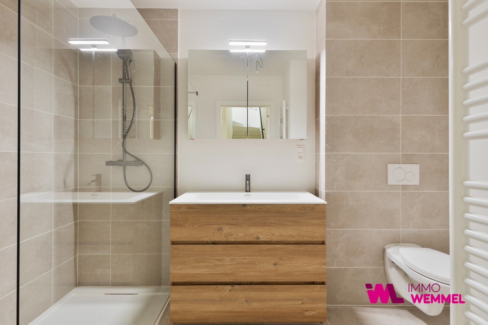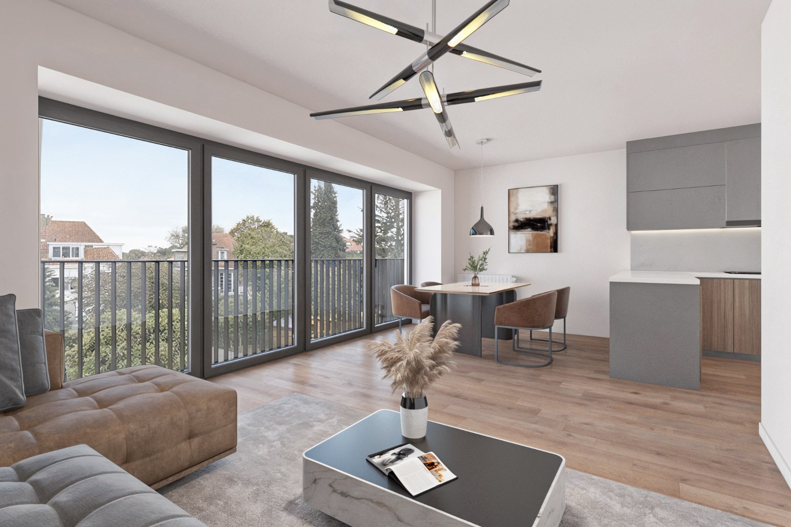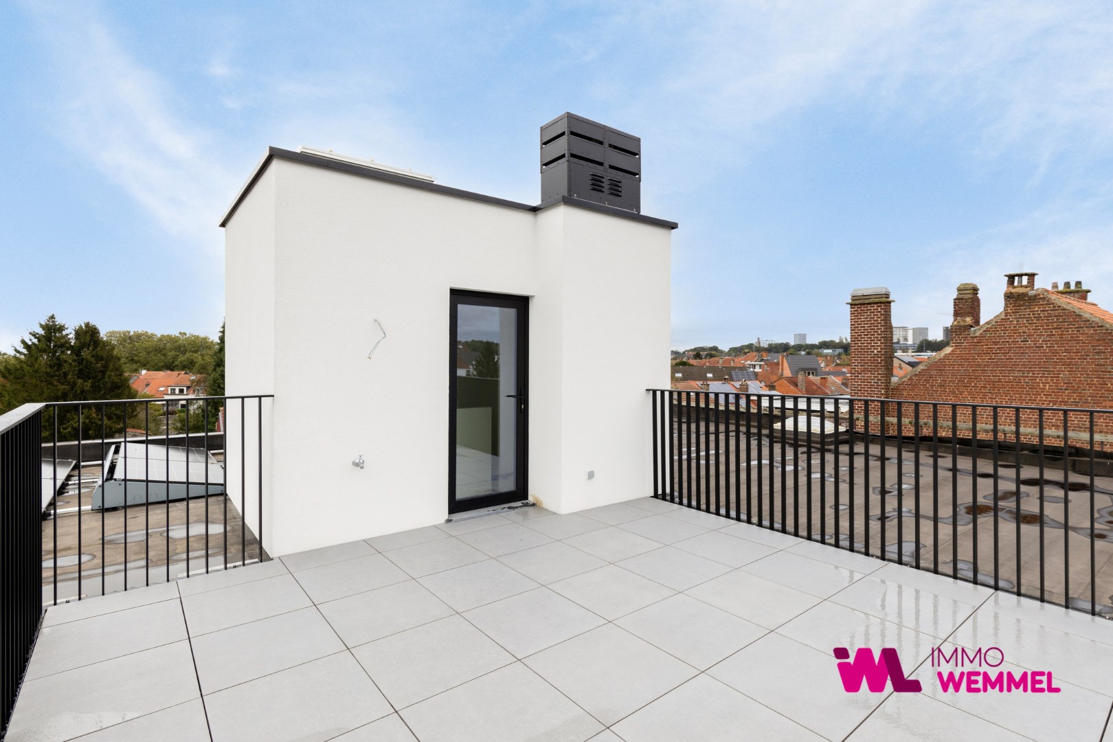 Dit exclusieve nieuwbouwappartement biedt luxe en comfort in een moderne setting. Het appartement beschikt over twee ruime slaapkamers, een lichte, open leefruimte, een volledig uitgeruste keuken en een eigentijdse badkamer. Daarnaast is er een royale berging voor extra opslagruimte en een ondergrondse, collectieve garage. Het absolute pronkstuk is het grote dakterras met een aangelegde groenzone, ideaal voor ontspanning en genieten van het buitenleven in alle rust en privacy.
