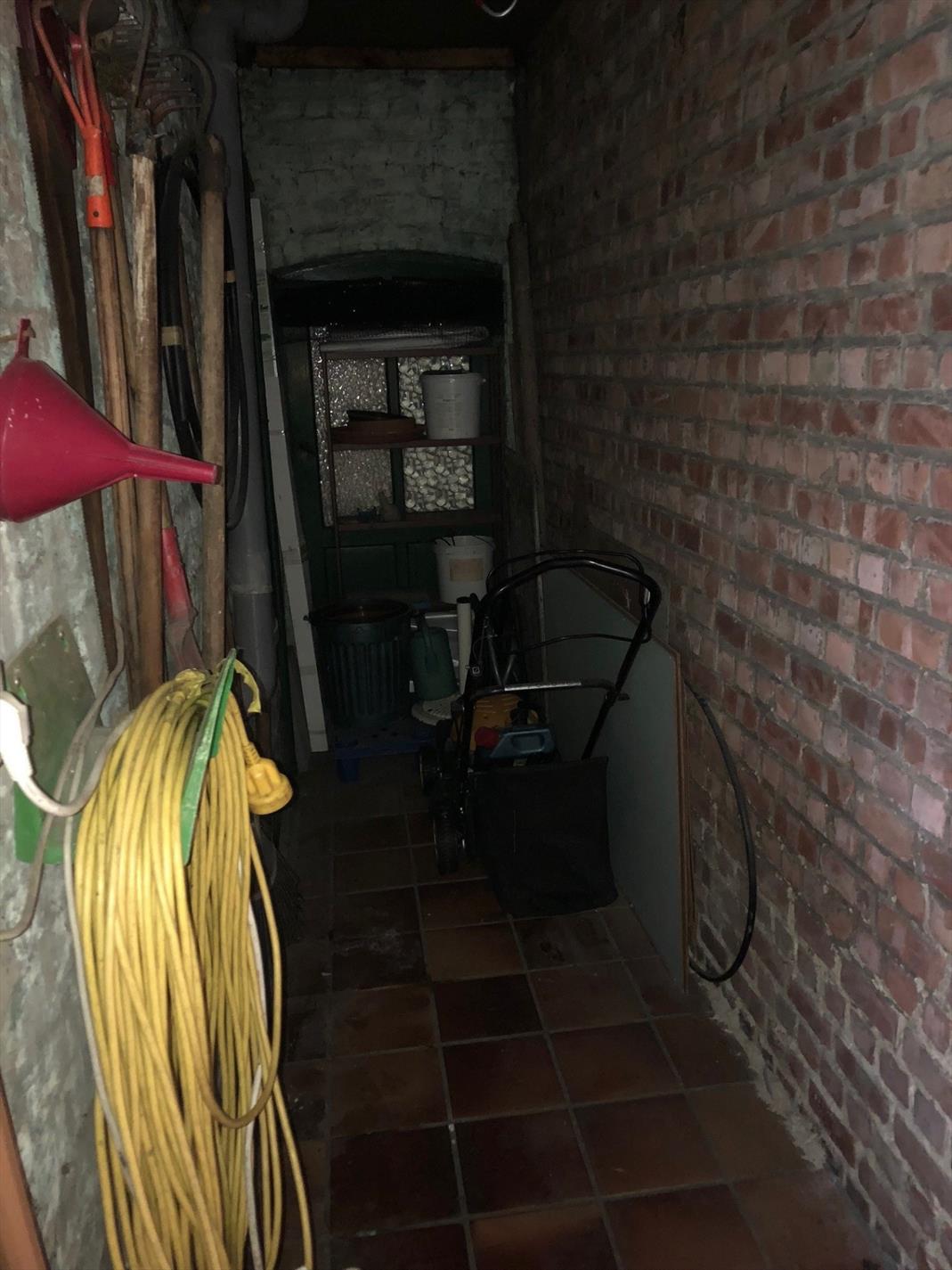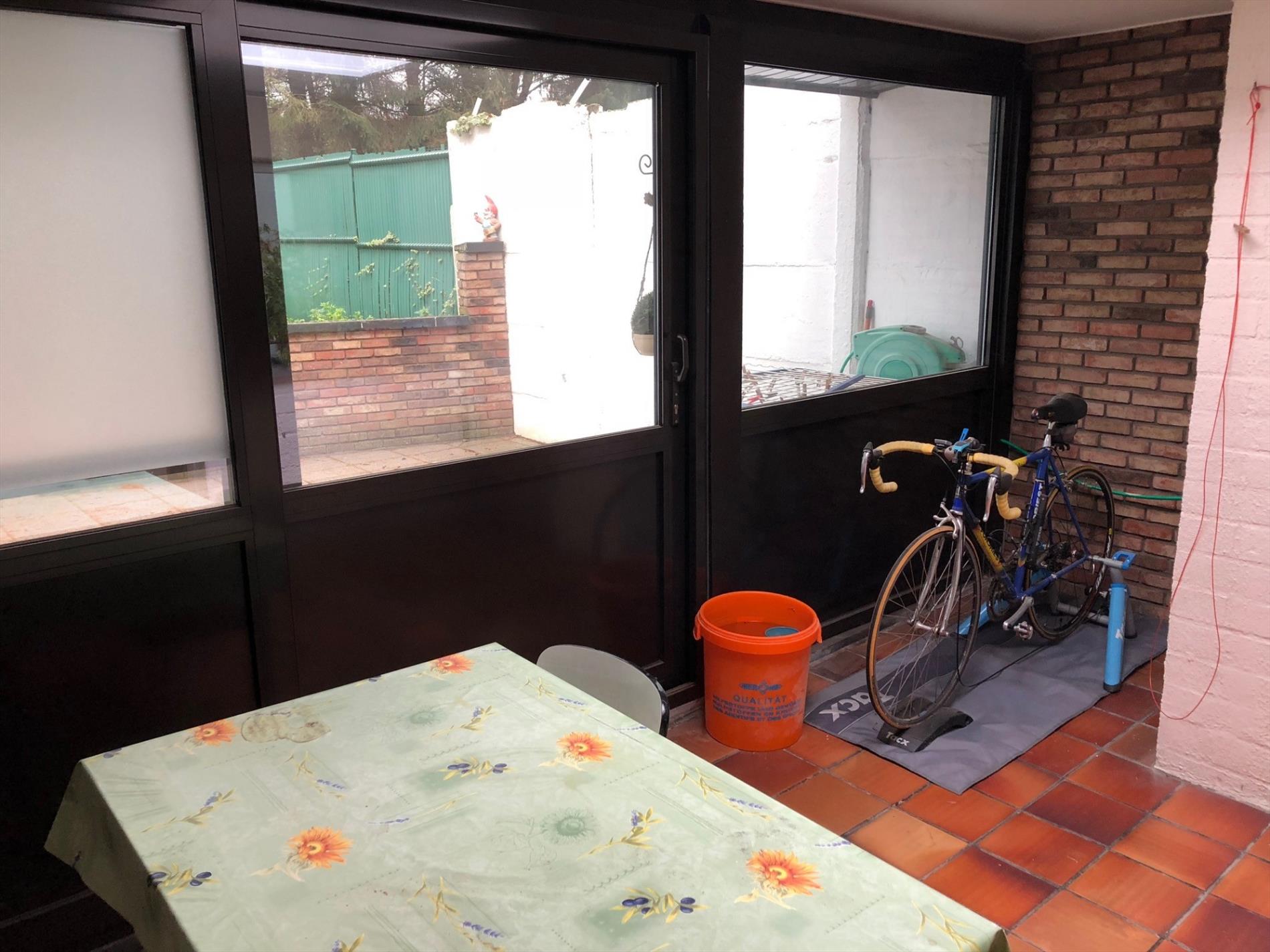 Centraal gelegen bel-étage woning bestaande uit inkom, living, keuken, eetplaats, bijkeuken met veranda, 2 slaapkamers, waarvan één met mezanine (= bijkomende mansardekamer), badkamer, 2 WC's, koer, berging en garage. Mooi zicht op het park. Airco aanwezig. EPC: 312 kWh/m²/jaar.