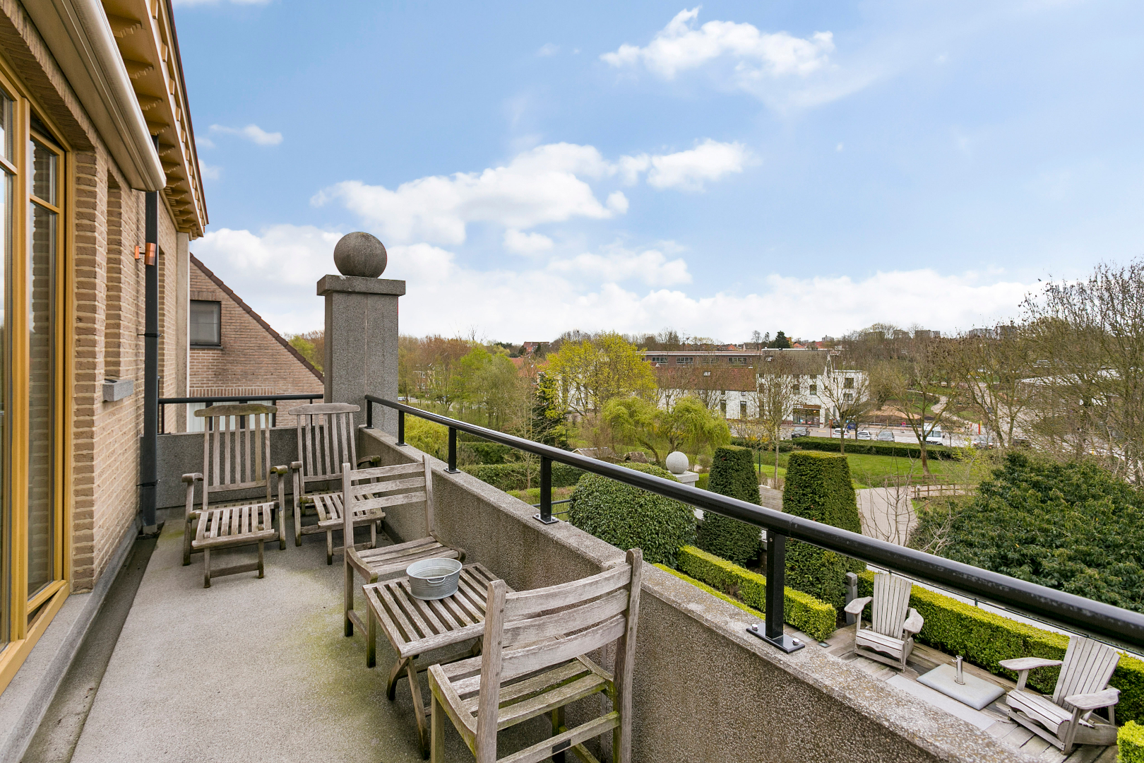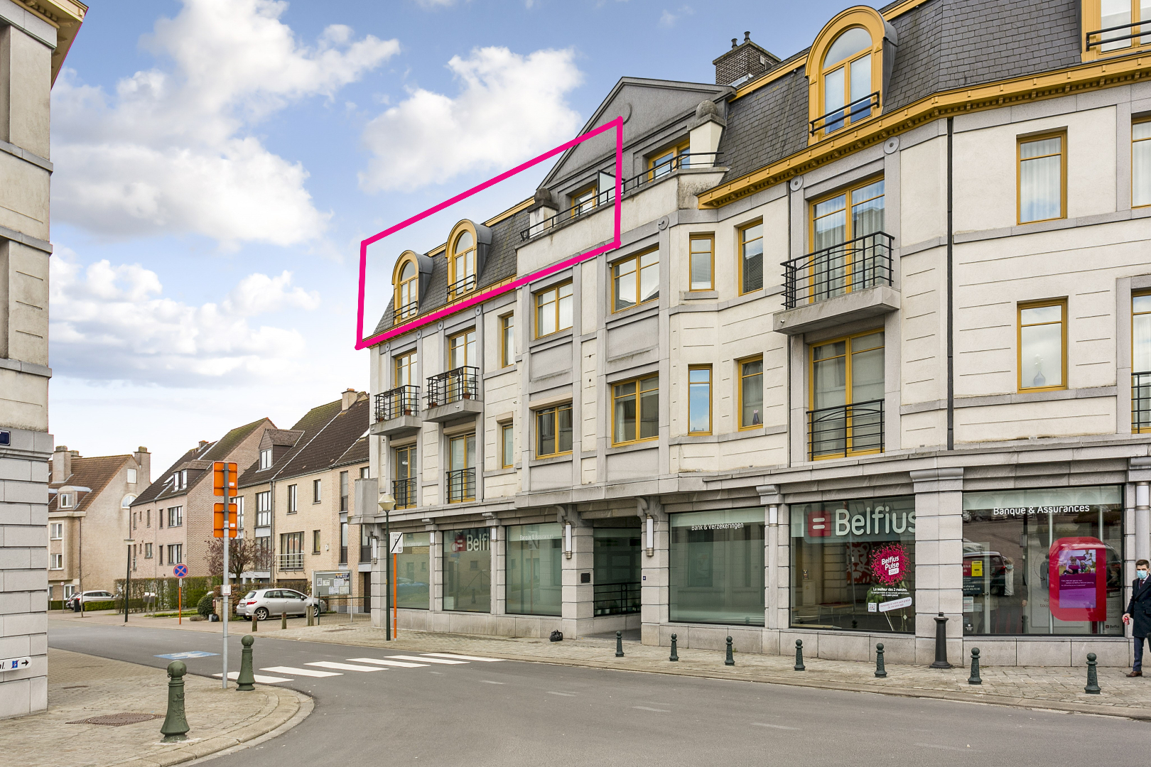 Prachtig duplex appartement MET INTERNE LIFT, gelegen op de Markt te Wemmel, met zicht op het achterliggend park. Deze prachtige duplex is gelegen op de 2e en 3e verdieping van een residentieel gebouw met lift. Men komt binnen in de inkomhal met aparte WC, een ruime woonkamer met toegang tot het prachtige (ZUID !) gerichte terras met zicht op het park, en een volledig ingerichte keuken met berging. Via de interne lift (of trap), heeft men toegang tot de nachthal van het verdiep. Hier bevinden zich 3 ruime slaapkamers : een master bedroom (19m²) met eigen badkamer en terras, een tweede slaapkamer (13m²) en een derde kamer (10m²), een douchekamer en een aparte WC. Dankzij de interne lift, is dit appartement zowel geschikt voor iedereen. Bovendien zijn er 2 garageboxen inbegrepen in de vraagprijs.