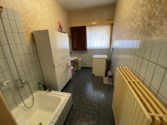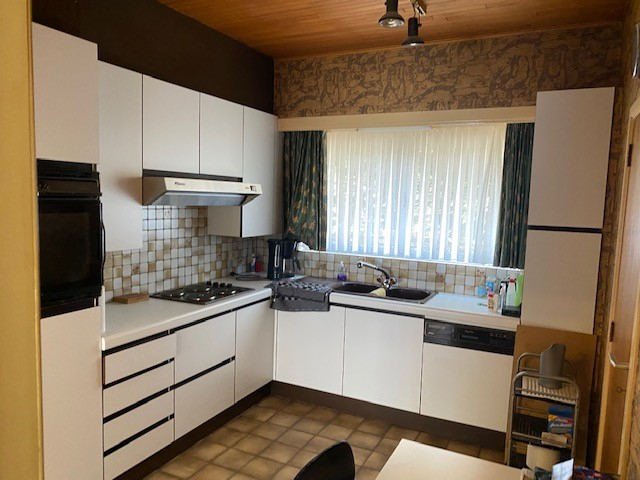 Rustig gelegen appartement in een openstaande woning. Ongeveer 110m² groot, bestaande uit inkom, zithoek, eethoek, keuken, WC, 2 slaapkamers, badkamer, kelder, garage en ruime tuin. EPC: E 429kWh/m²/jaar.