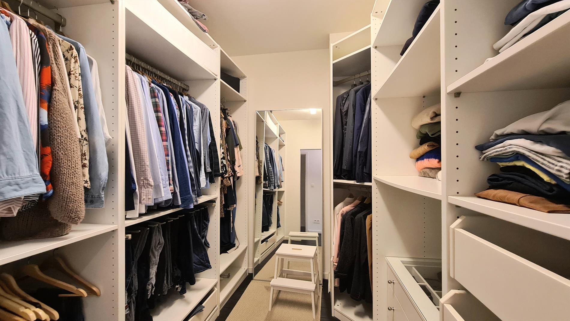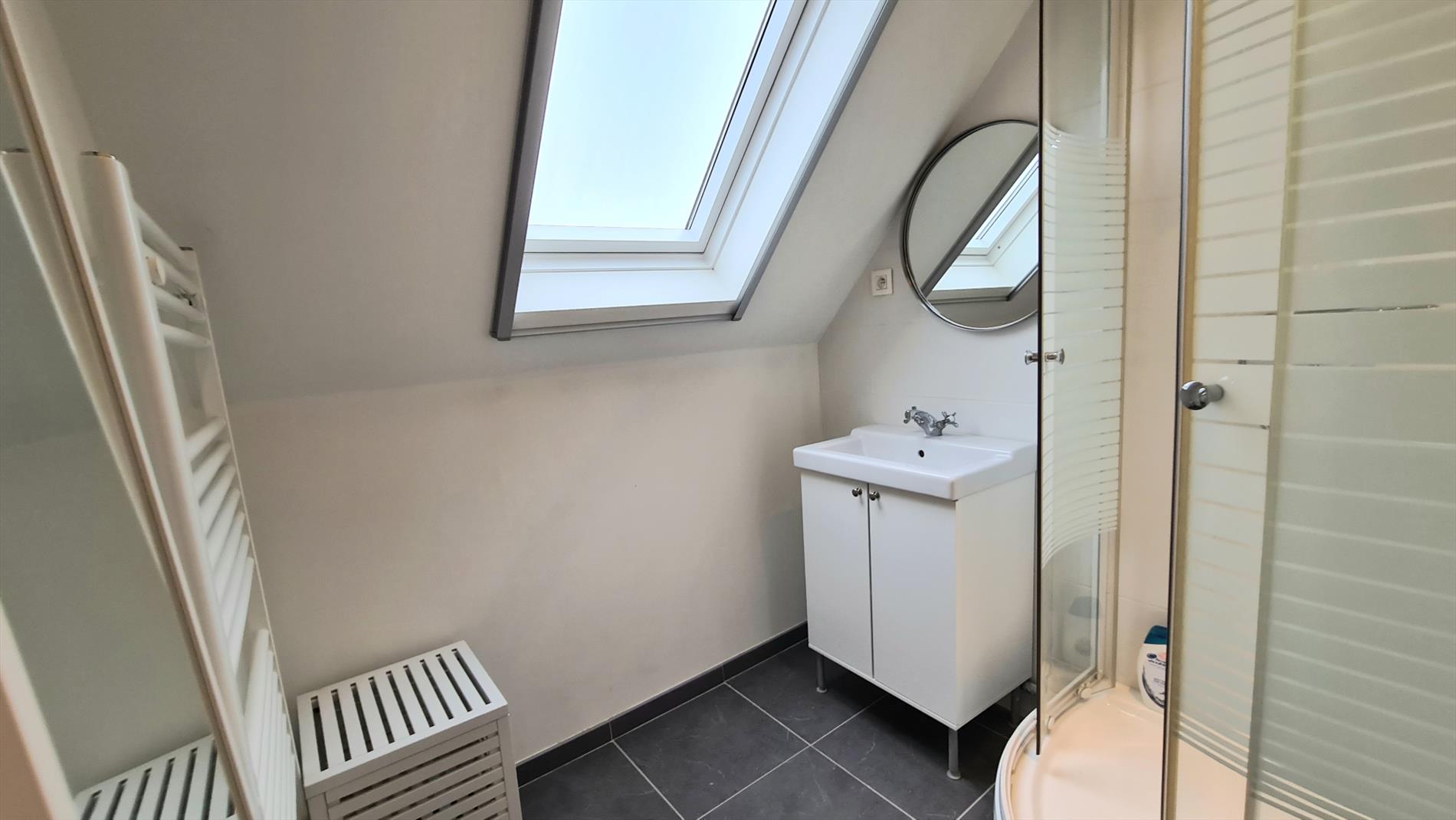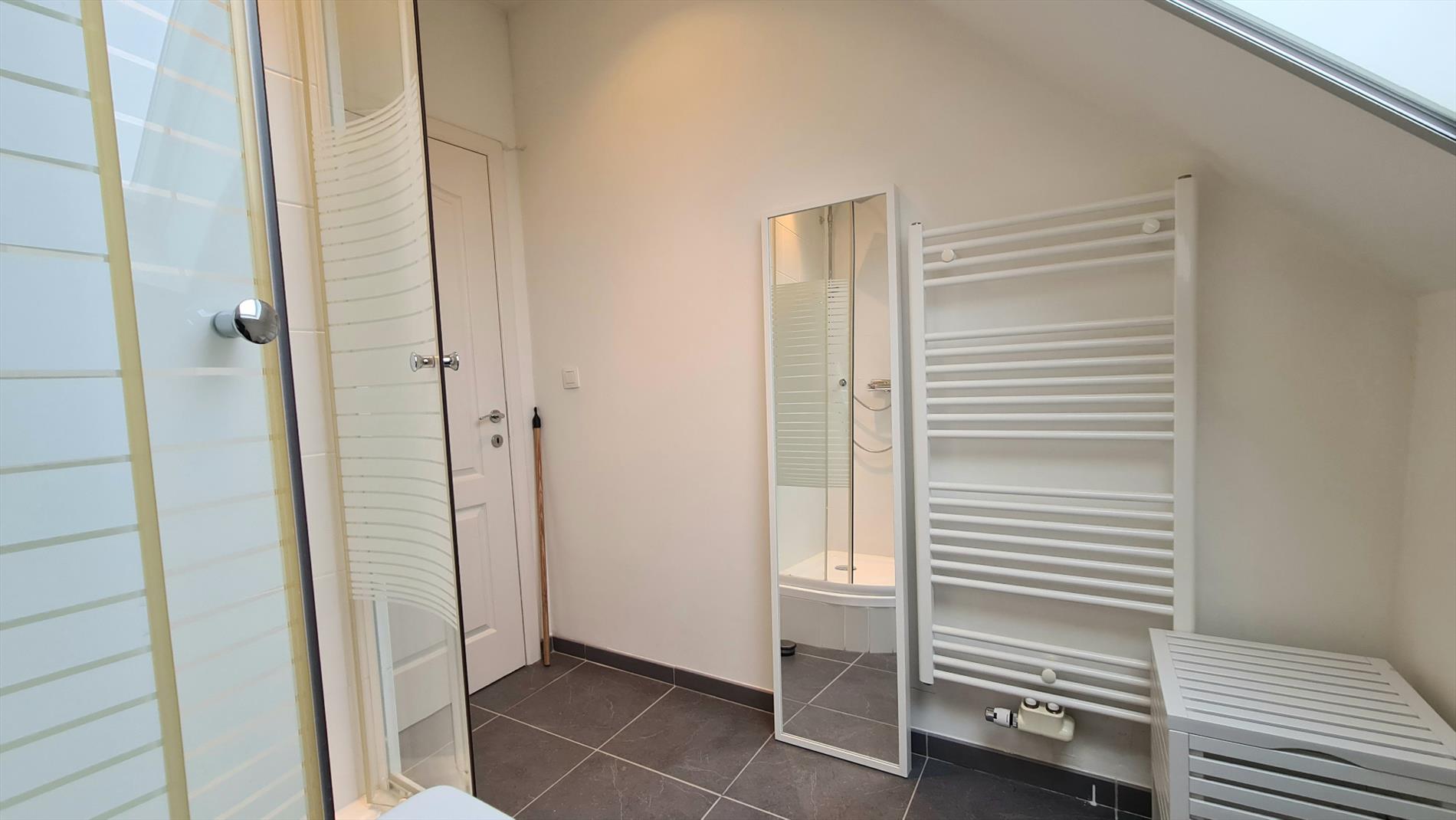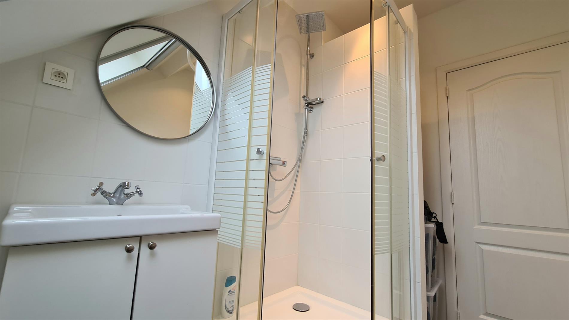 Het huis is ingedeeld als volgt: op het gelijkvloers bevindt zich een ruime inkomhal met aparte WC en toegang tot de kelder, Via deze inkomhal komt men binnen in een ruime woonkamer met TV-hoek, eetruimte en een open- volledig ingerichte- leefkeuken. Deze lichtrijke en gezellige ruimte geeft toegang tot de tuin en het terras. Op de eerste verdieping bevindt zich de hoofdslaapkamer met dressing, een tweede slaapkamer, een badkamer met douche en ligbad en een bureau/opbergruimte. Op de tweede verdieping bevinden zich eveneens 2 ruime slaapkamers, een douchekamer en een bureau. De woning is volledig onderkelderd (aparte wasruimte met aansluiting voor wasmachine en droogkast, opbergruimte, garage voor een gezinswagen en fietsen). De woning beschikt eveneens over een volledig geïsoleerde zolder.