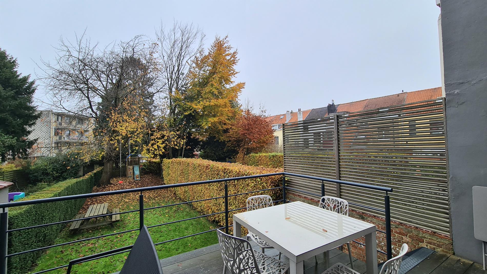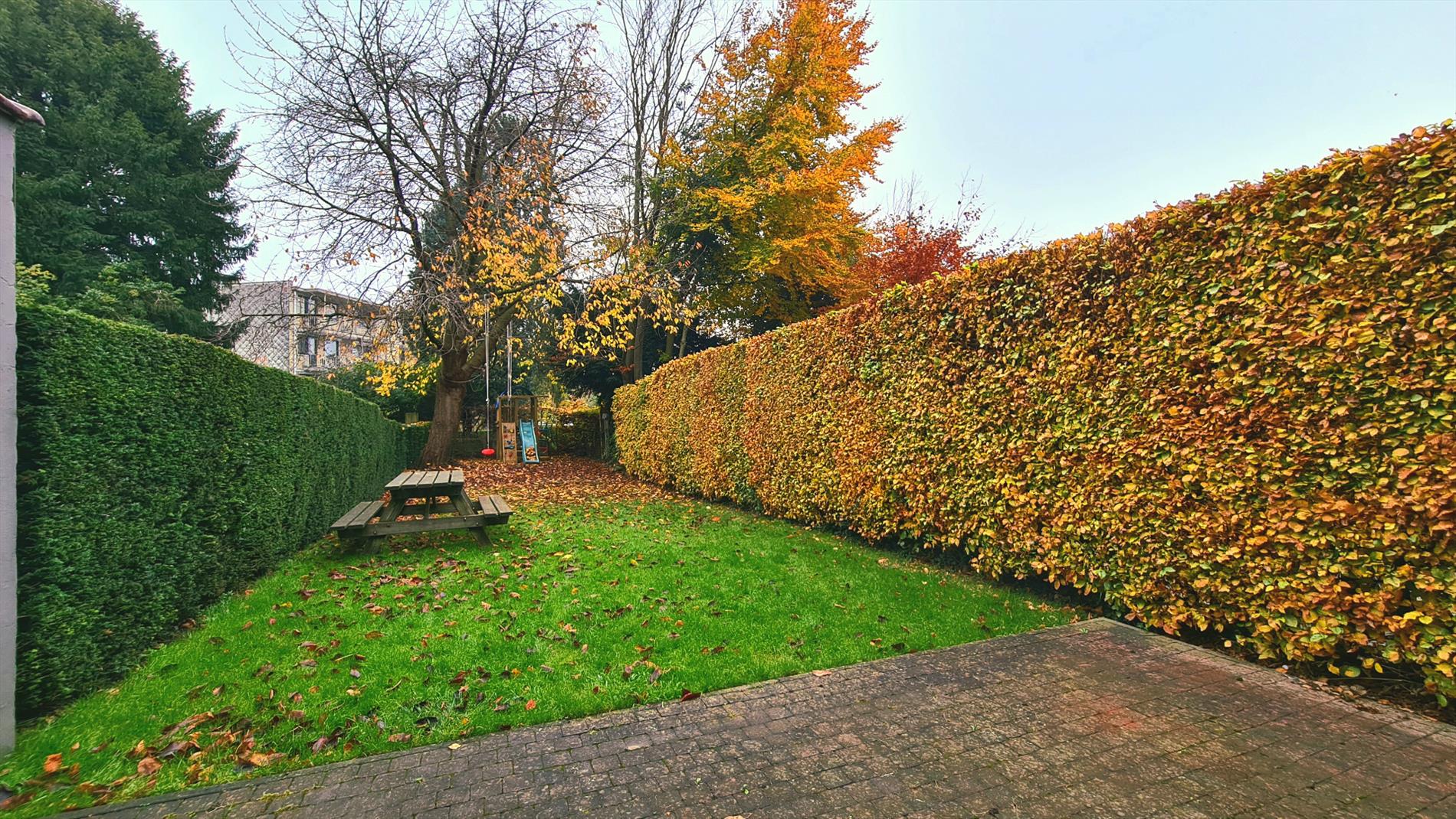 De tuin is rechtstreeks bereikbaar via de kelder en via het terras dat aansluit op de leefruimte. De tuin is goed onderhouden en heeft eveneens een beneden terras