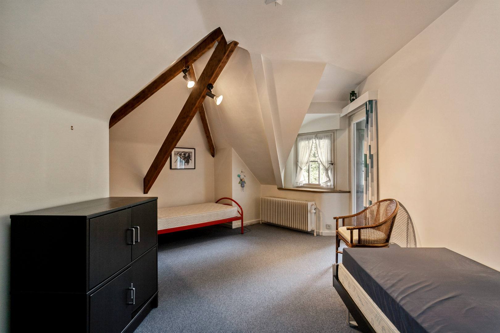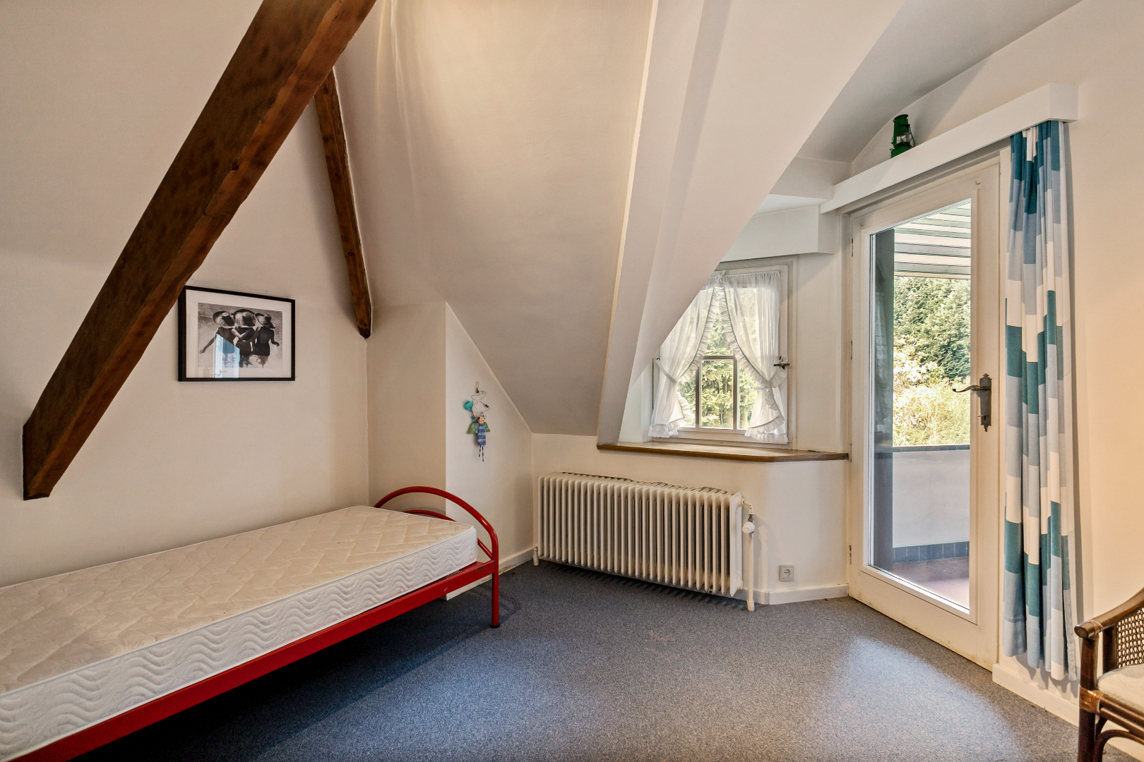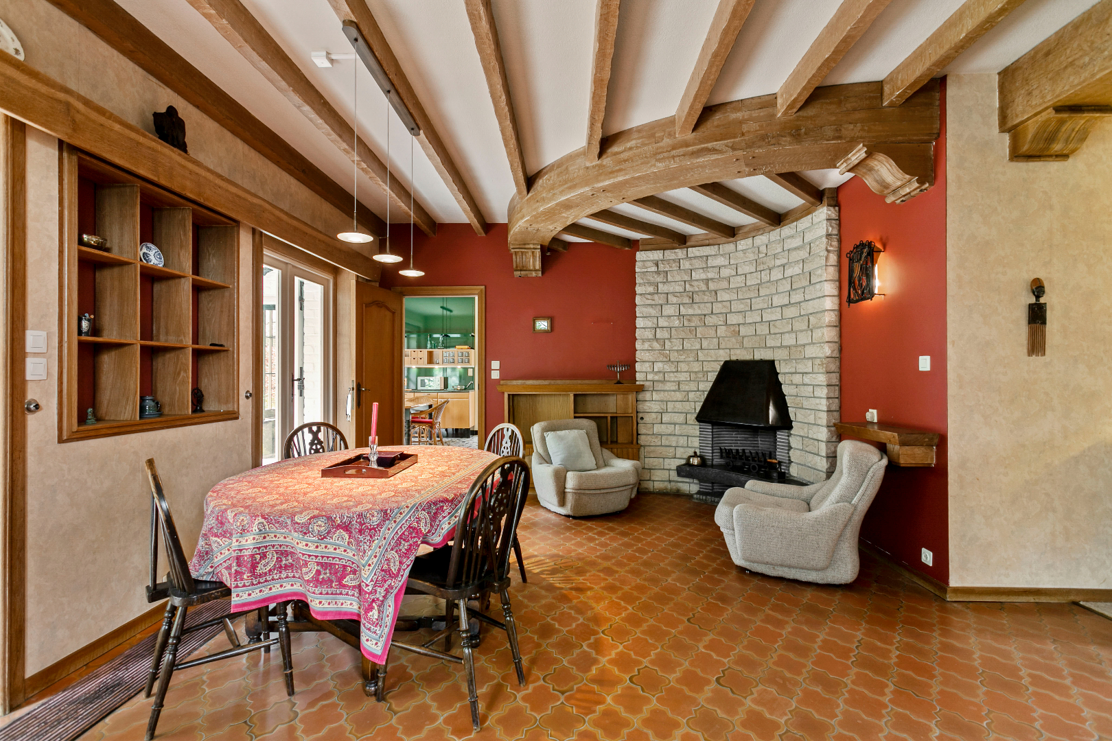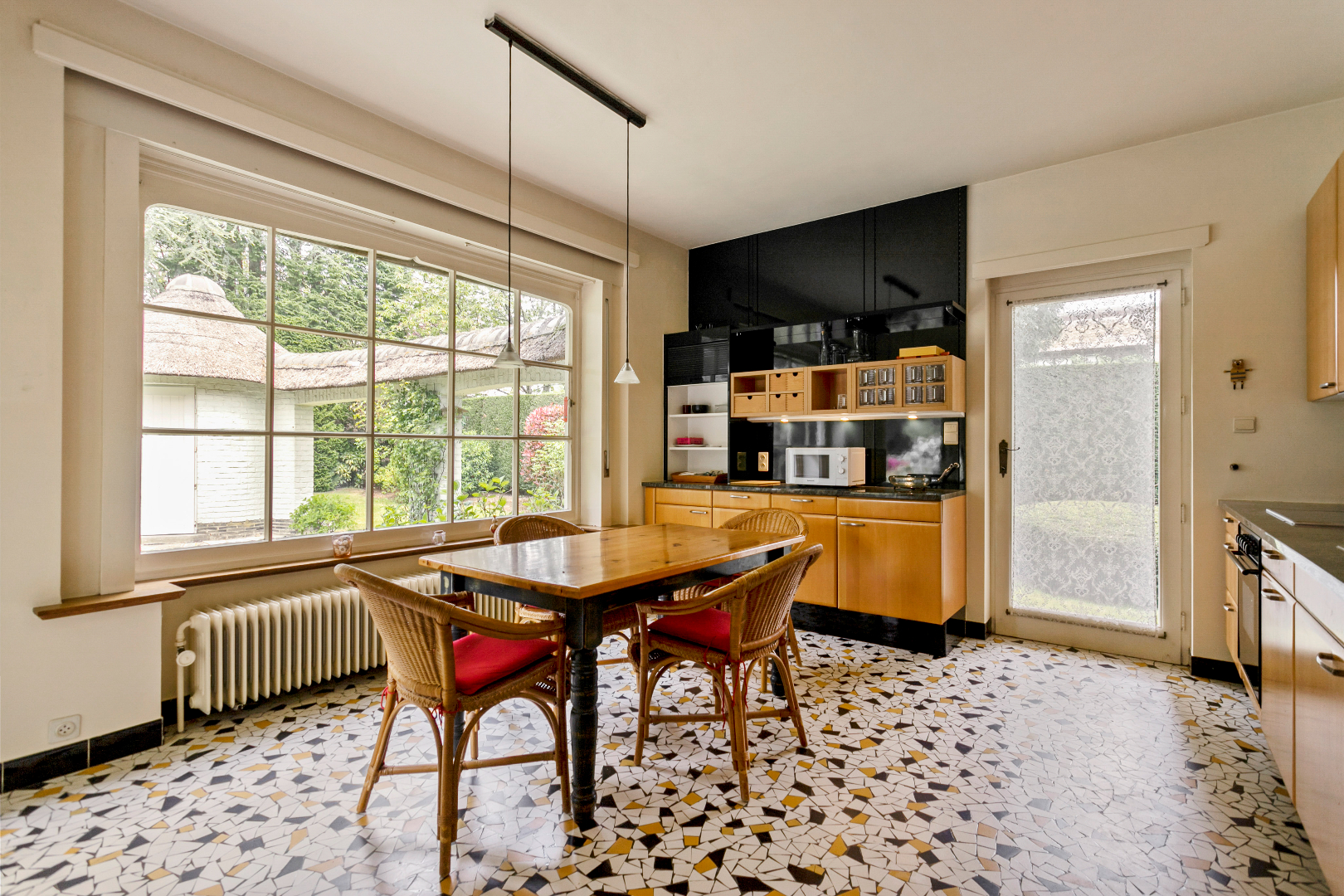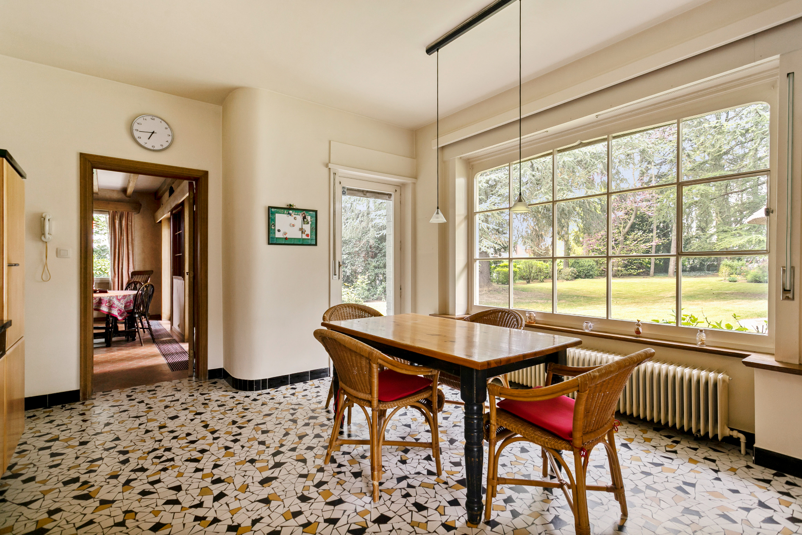 Immo Wemmel biedt u deze charmante villa aan in een rustige en residentiële wijk te Meise. De woning uit 1958 heeft een bewoonbare oppervlakte van 245m² en beschikt over een kelderverdieping van 90m² met garage. Omgeven door een prachtige tuin, biedt deze villa u de nodige rust en privacy. De woning is ingedeeld als volgt: De inkomhal geeft toegang tot de woon- en eetkamer met zithoek en open haard. zowel via de woonkamer als de inkomhal heeft men toegang tot de ingerichte keuken, met zich tot de achterliggende tuin. Op het gelijkvloers bevindt zich eveneens een ruime bureauruimte, een vestiaire en een gastentoilet. Via de massieve houten trap, komt men op de eerste verdieping. Hier bevinden zich 3 slaapkamers waarvan 2 met een gemeenschappelijk terras, en een badkamer. De woning beschikt over meerdere kelders en heeft een garage voor 2 wagens.
