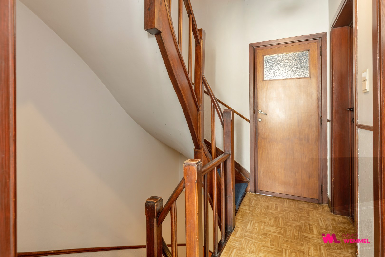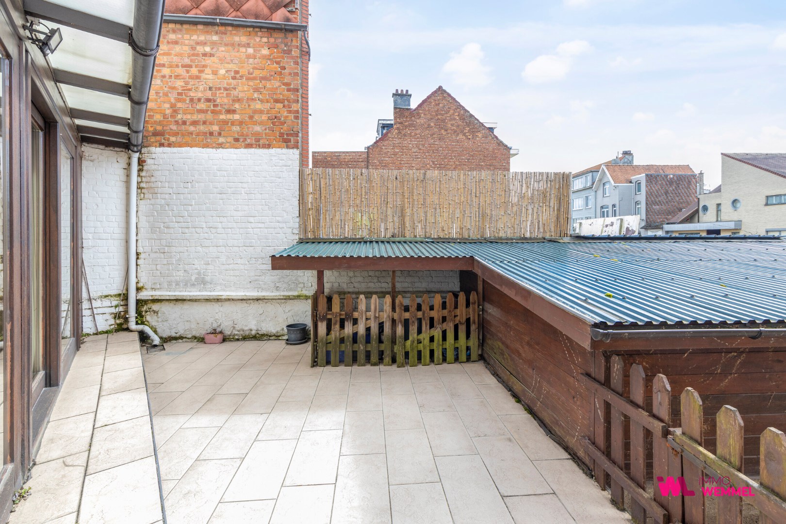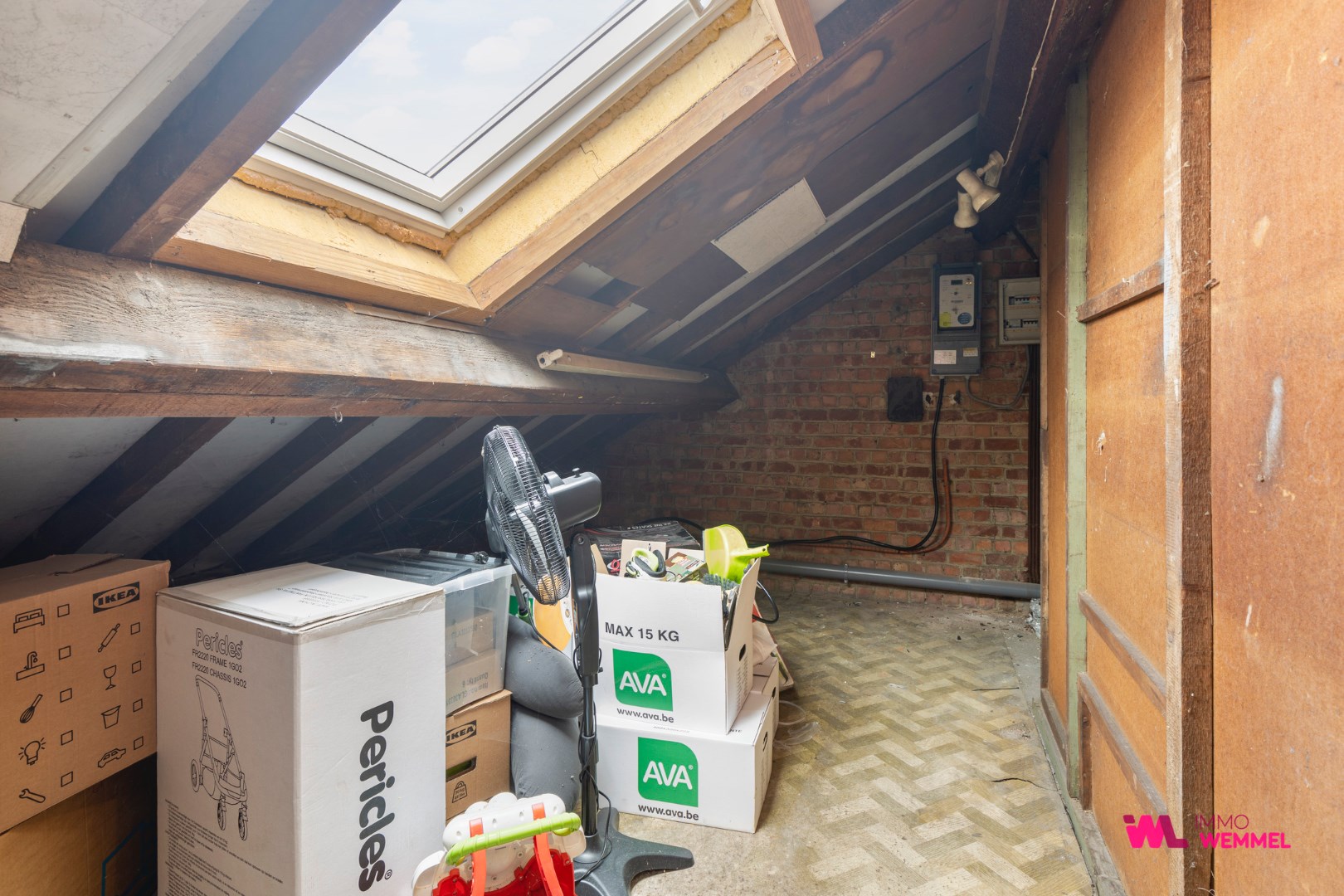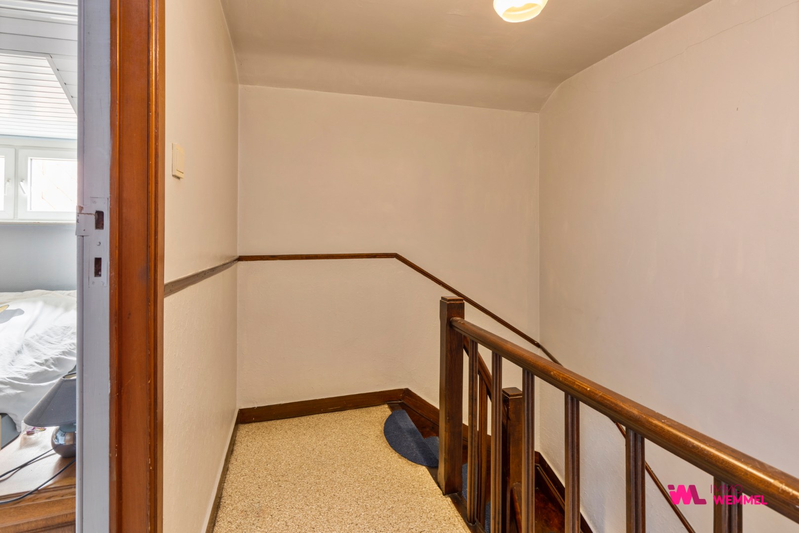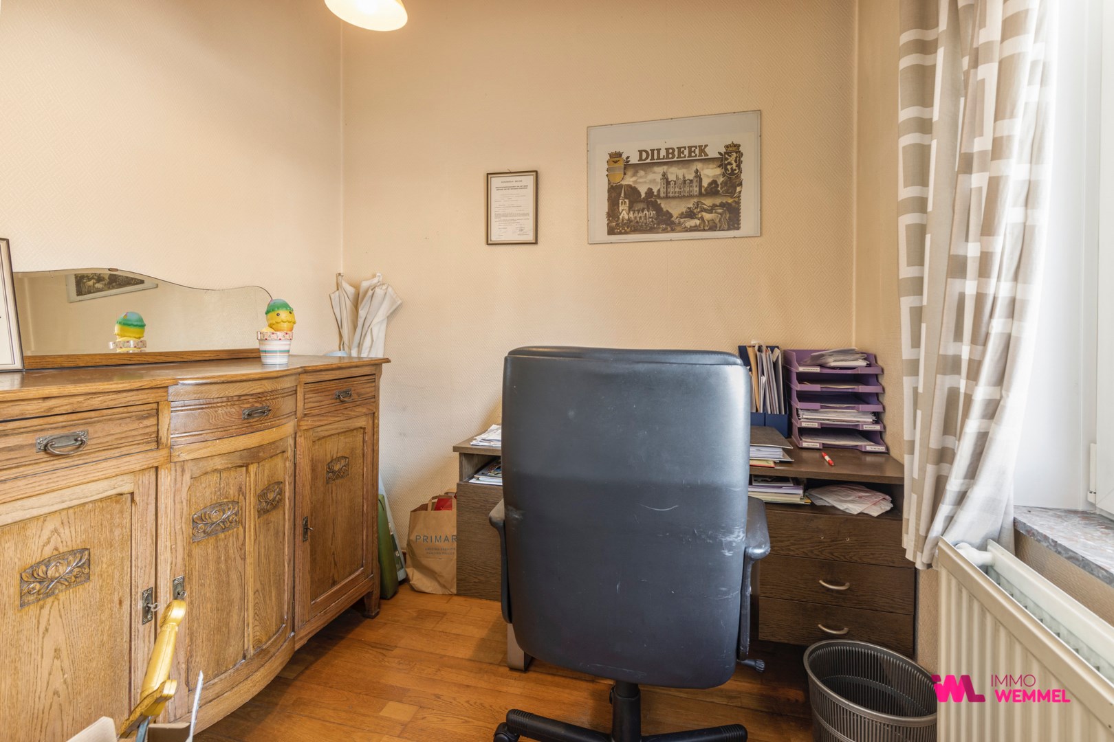 Op het gelijkvloers bevindt zich de kapperszaak (33m2) met berging, wc en wasruimte. Op het eerste verdiep bevindt zich de leefruimte met zithoek, eetplaats, keuken, en veranda met toegang tot de tuin. Een klein bureel geeft de mogelijkheid om deze woonkamer eventueel nog uit te breiden. Op de tweede verdieping zijn er 2 slaapkamers, een bureau en de badkamer met ligbad en wc. Op de derde verdieping bevindt zich een derde slaapkamer, evenals een zolderruimte die eveneens ingericht kan worden als kamer. De tuin van de woning geeft uit op de achterliggende straat. Naast de parkingplaatsen van de handelszaak kan men ook in de achterliggende garage parkeren. algemene info: EPC : C , verwarming op gas , Dubbele beglazing