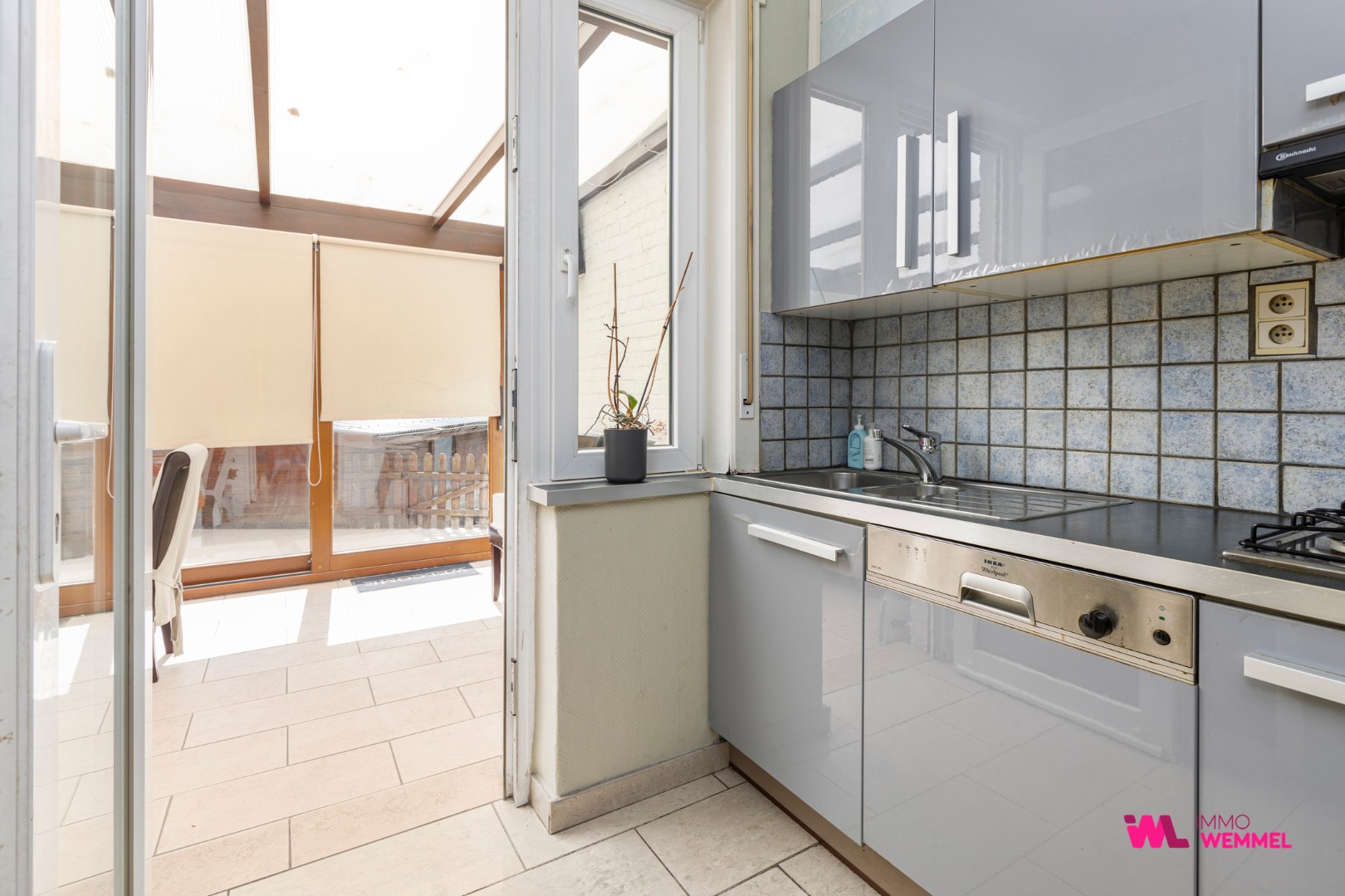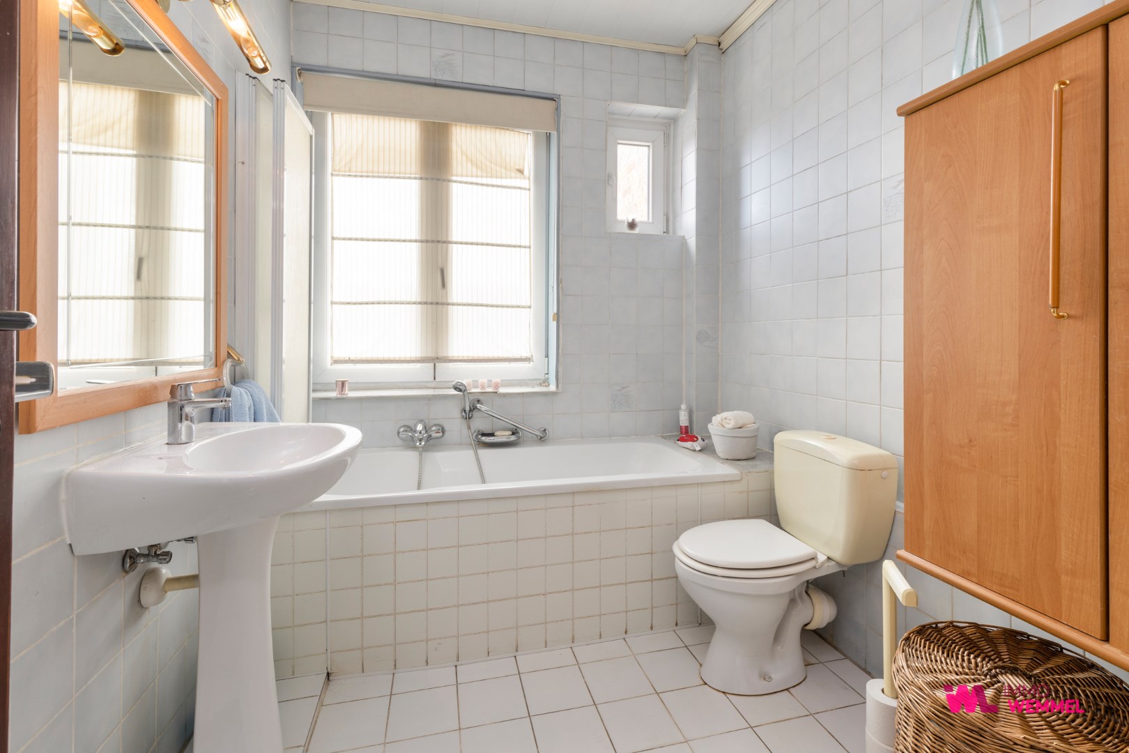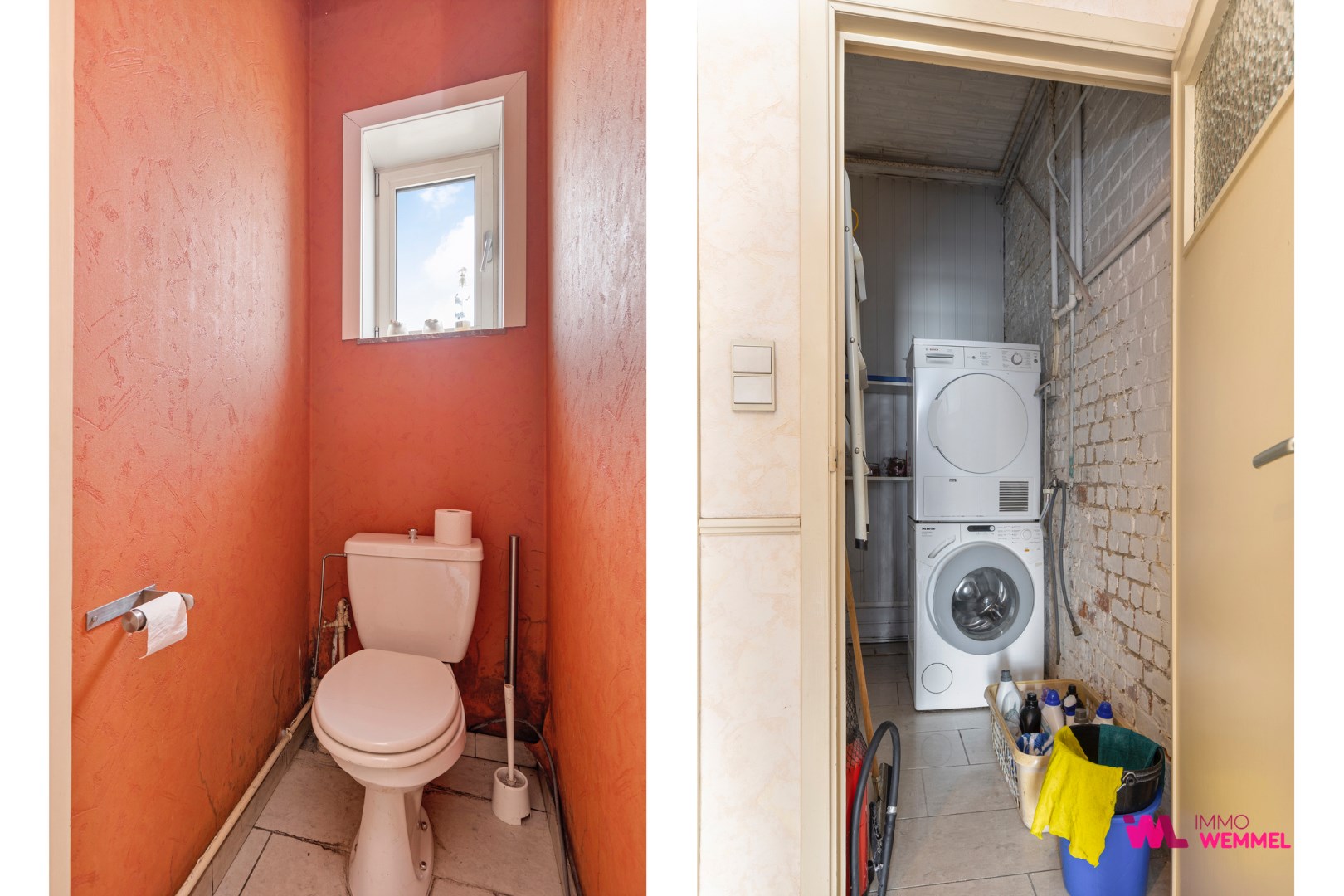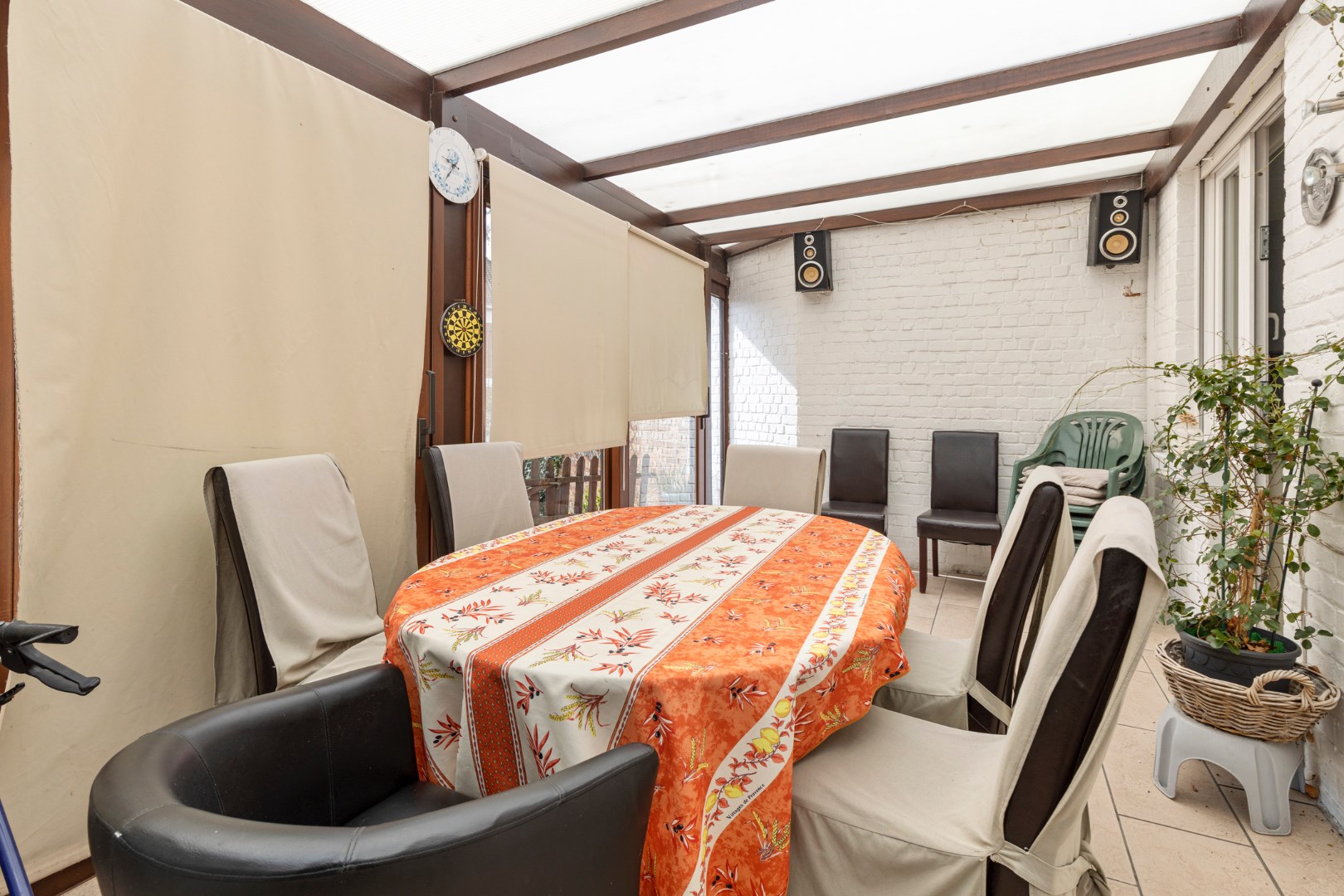 Op het gelijkvloers bevindt zich de kapperszaak (33m2) met berging, wc en wasruimte. Op het eerste verdiep bevindt zich de leefruimte met zithoek, eetplaats, keuken, en veranda met toegang tot de tuin. Een klein bureel geeft de mogelijkheid om deze woonkamer eventueel nog uit te breiden. Op de tweede verdieping zijn er 2 slaapkamers, een bureau en de badkamer met ligbad en wc. Op de derde verdieping bevindt zich een derde slaapkamer, evenals een zolderruimte die eveneens ingericht kan worden als kamer. De tuin van de woning geeft uit op de achterliggende straat. Naast de parkingplaatsen van de handelszaak kan men ook in de achterliggende garage parkeren. algemene info: EPC : C , verwarming op gas , Dubbele beglazing