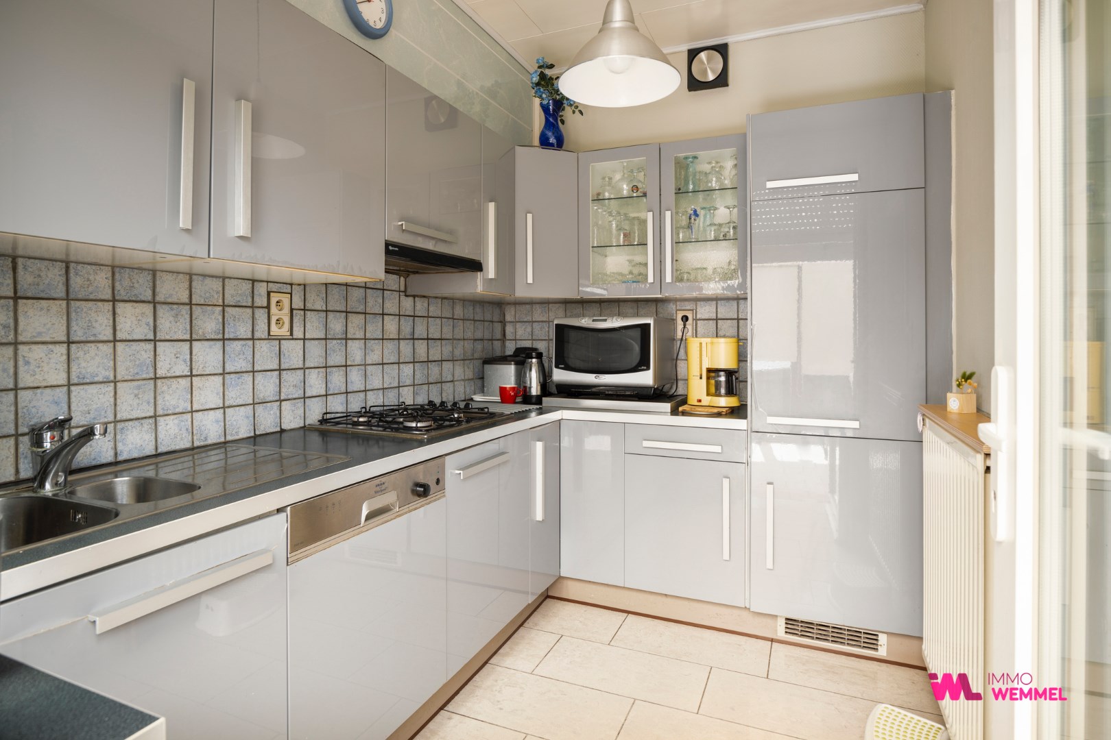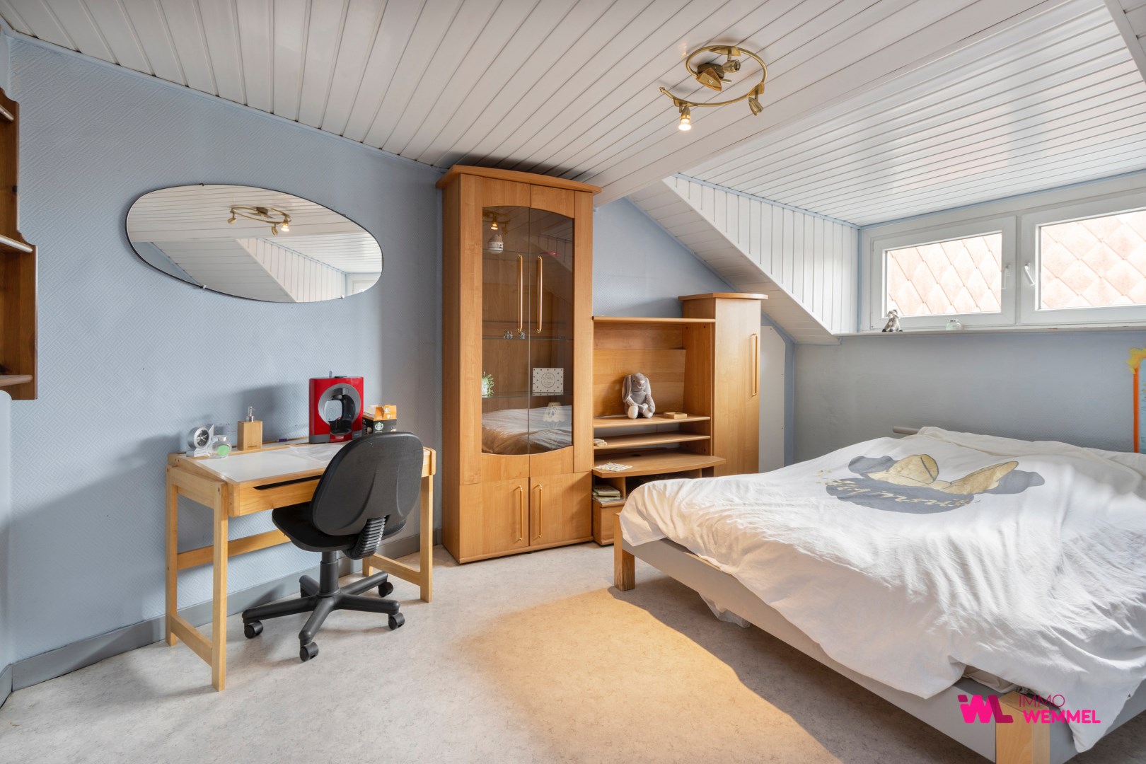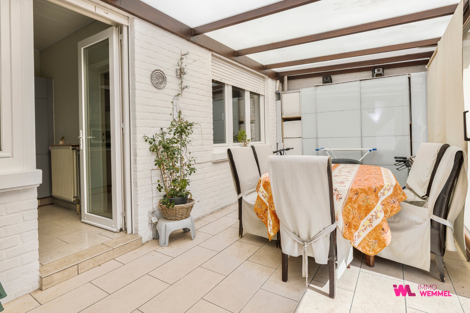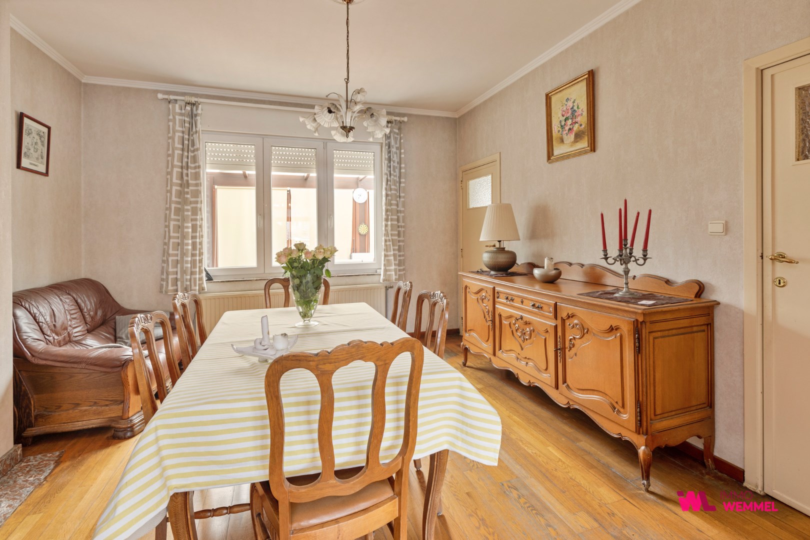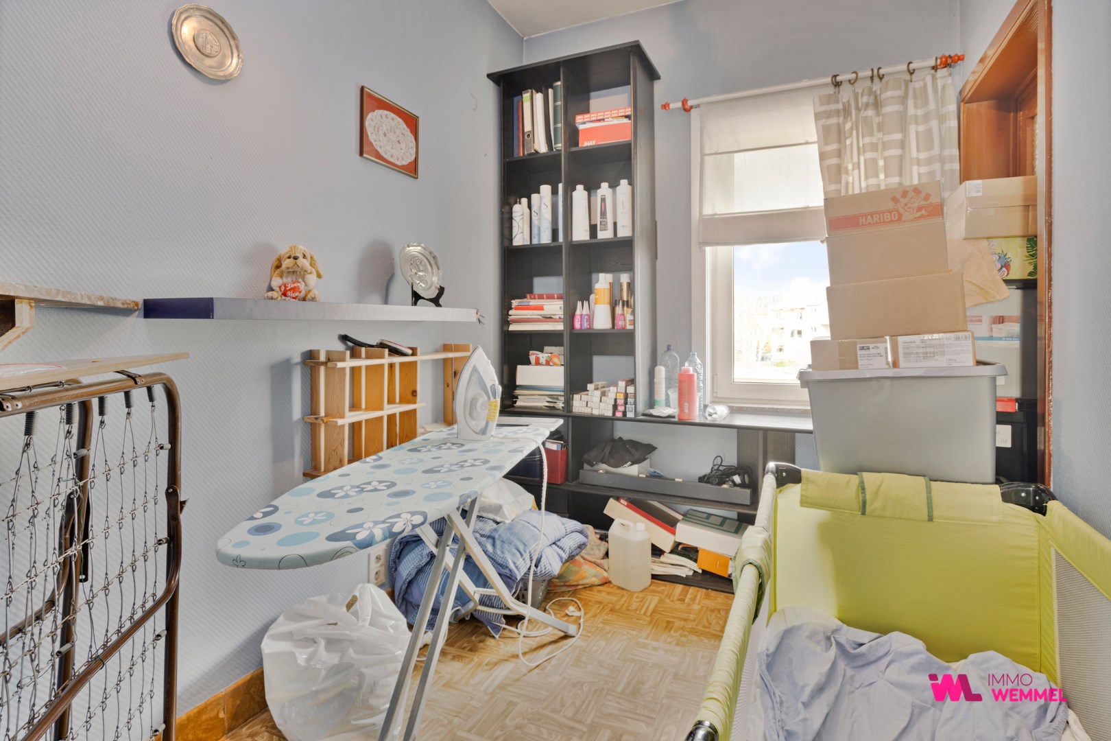 Op het gelijkvloers bevindt zich de kapperszaak (33m2) met berging, wc en wasruimte. Op het eerste verdiep bevindt zich de leefruimte met zithoek, eetplaats, keuken, en veranda met toegang tot de tuin. Een klein bureel geeft de mogelijkheid om deze woonkamer eventueel nog uit te breiden. Op de tweede verdieping zijn er 2 slaapkamers, een bureau en de badkamer met ligbad en wc. Op de derde verdieping bevindt zich een derde slaapkamer, evenals een zolderruimte die eveneens ingericht kan worden als kamer. De tuin van de woning geeft uit op de achterliggende straat. Naast de parkingplaatsen van de handelszaak kan men ook in de achterliggende garage parkeren. algemene info: EPC : C , verwarming op gas , Dubbele beglazing
