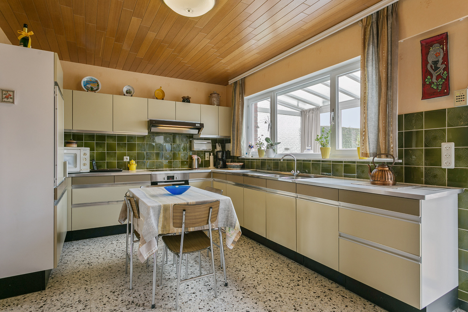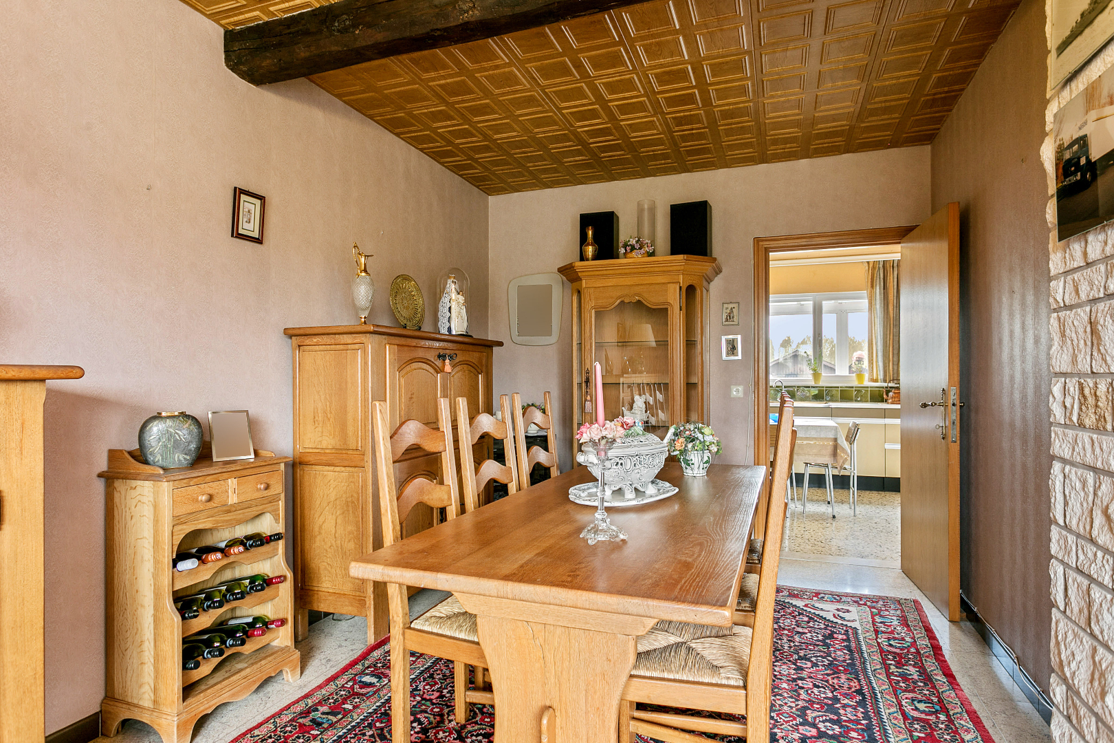Landelijk gelegen eengezinswoning te Bollebeek (Merchtem), in een rustige straat. De woning is ingedeeld als volgt : inkomhal met aparte Wc, woonkamer in L met open haard en eethoek, een ruime keuken ingebouwd met toestellen, een ruime veranda die uitgeeft op de mooie tuin, en wasplaats. Op de verdieping bevinden zich de 3 ruime slaapkamers en de badkamer. De woning beschikt eveneens over een garage en een zolder. De woning bevindt zich in een algemene zeer goede staat maar is wel op te frissen. Bezoeken op afspraak met immo Wemmel
