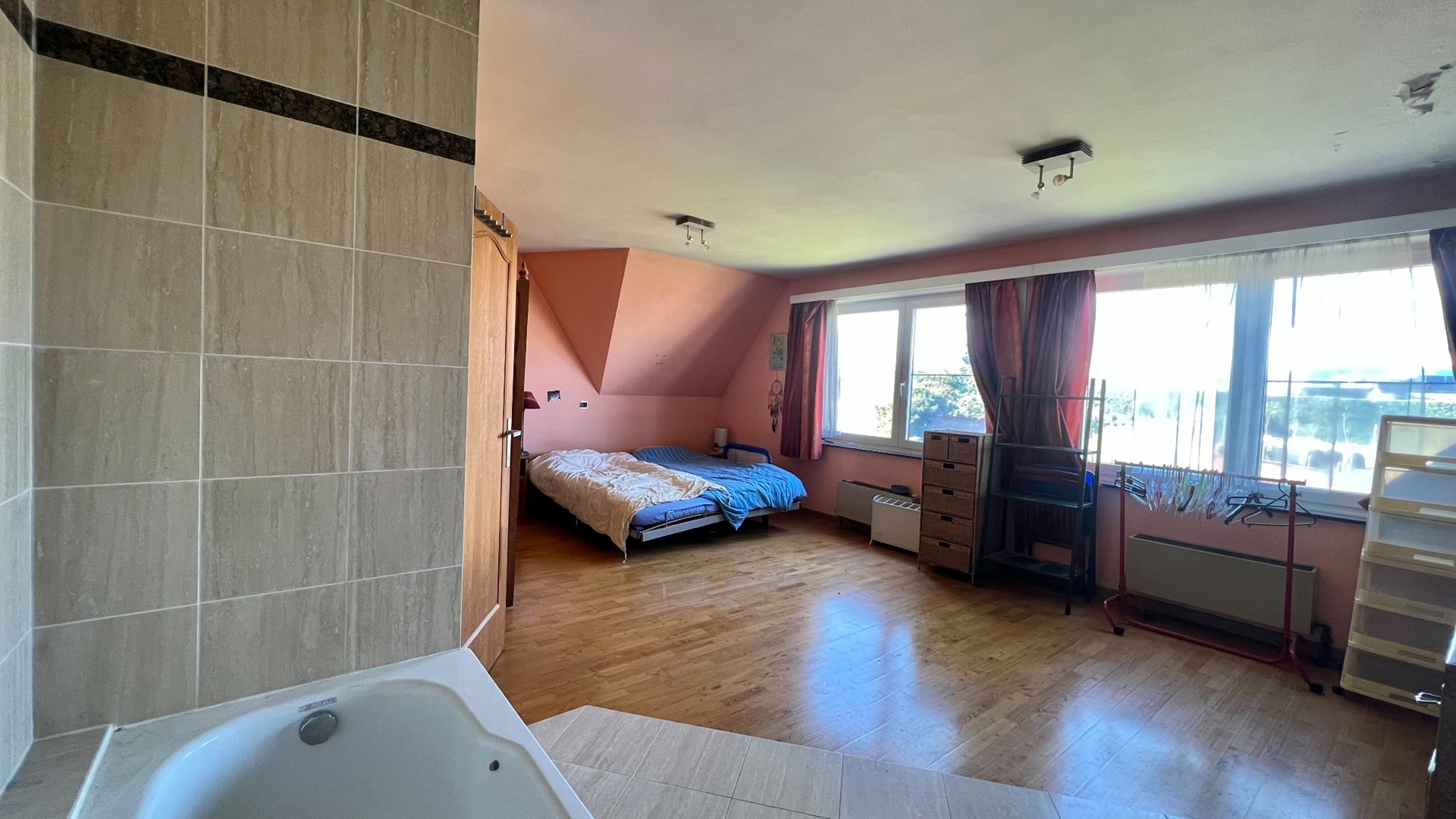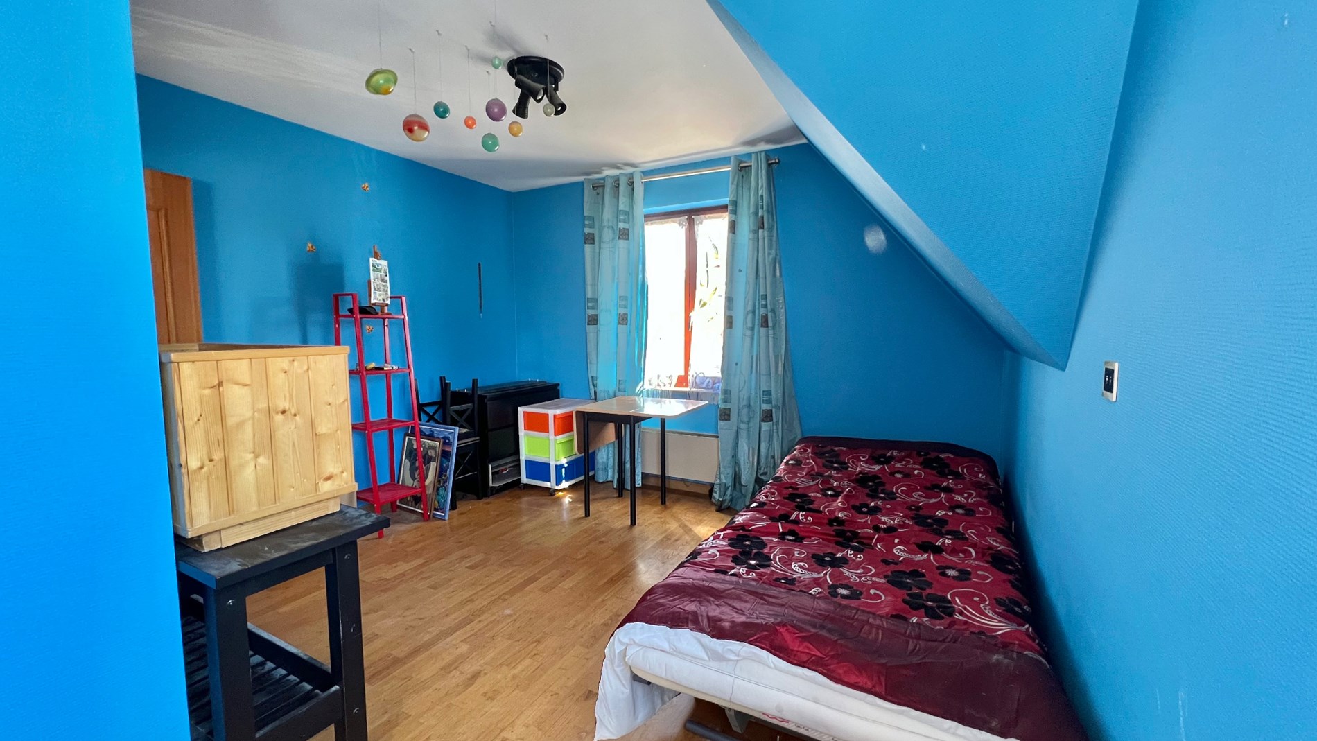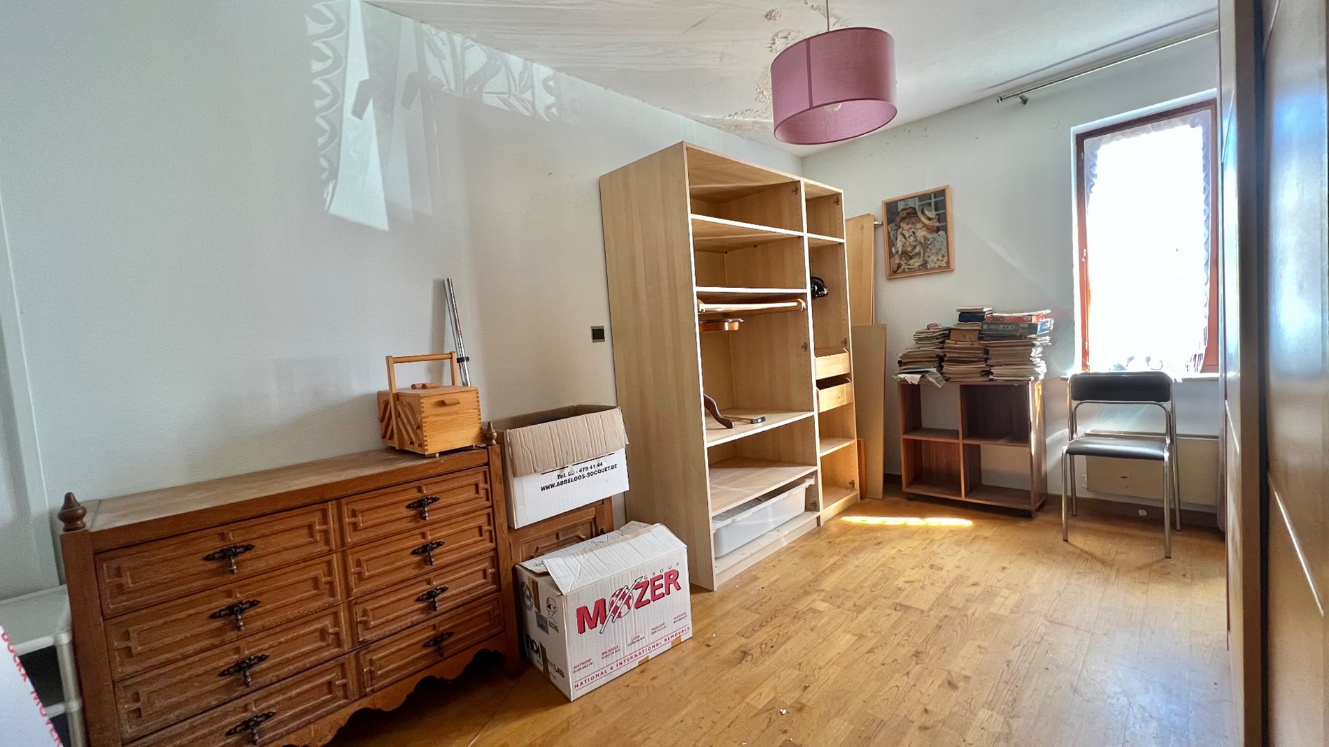 ONDER OPTE te renoveren eengezinswoning gelegen op wandelafstand van het centrum van Wemmel, openbaar vervoer, winkels, scholen en toeganswegen. De woning is gelegen op een perceel van 3a 50ca, met Westelijk georiënteerde tuin. De woning is ingedeeld als volgt: een ruime inkomhal met gastentoilet geeft toegang tot de leefruimte. Deze is ingericht in L-vorm met een open-haard en zicht op de tuin. De naastliggende keuken is toegankelijk via de woonkamer en de inkomhal. Op het gelijkvloers bevindt zich eveneens een bureauruimte (8,5m2). Op het verdiep bevinden zich 3 slaapkamers, waarvan 1 hoofdslaapkamer met eigen badkamer. Er is eveneens een tweede douchekamer met wc. Er is eveneens een zolder die niet ingericht is, een ruime kelder en een ruime garage achteraan de woning. algemene info: alarminstallatie aanwezig, dubbele beglazing hout en pvc; verwarming op gas; elektriciteit niet conform.