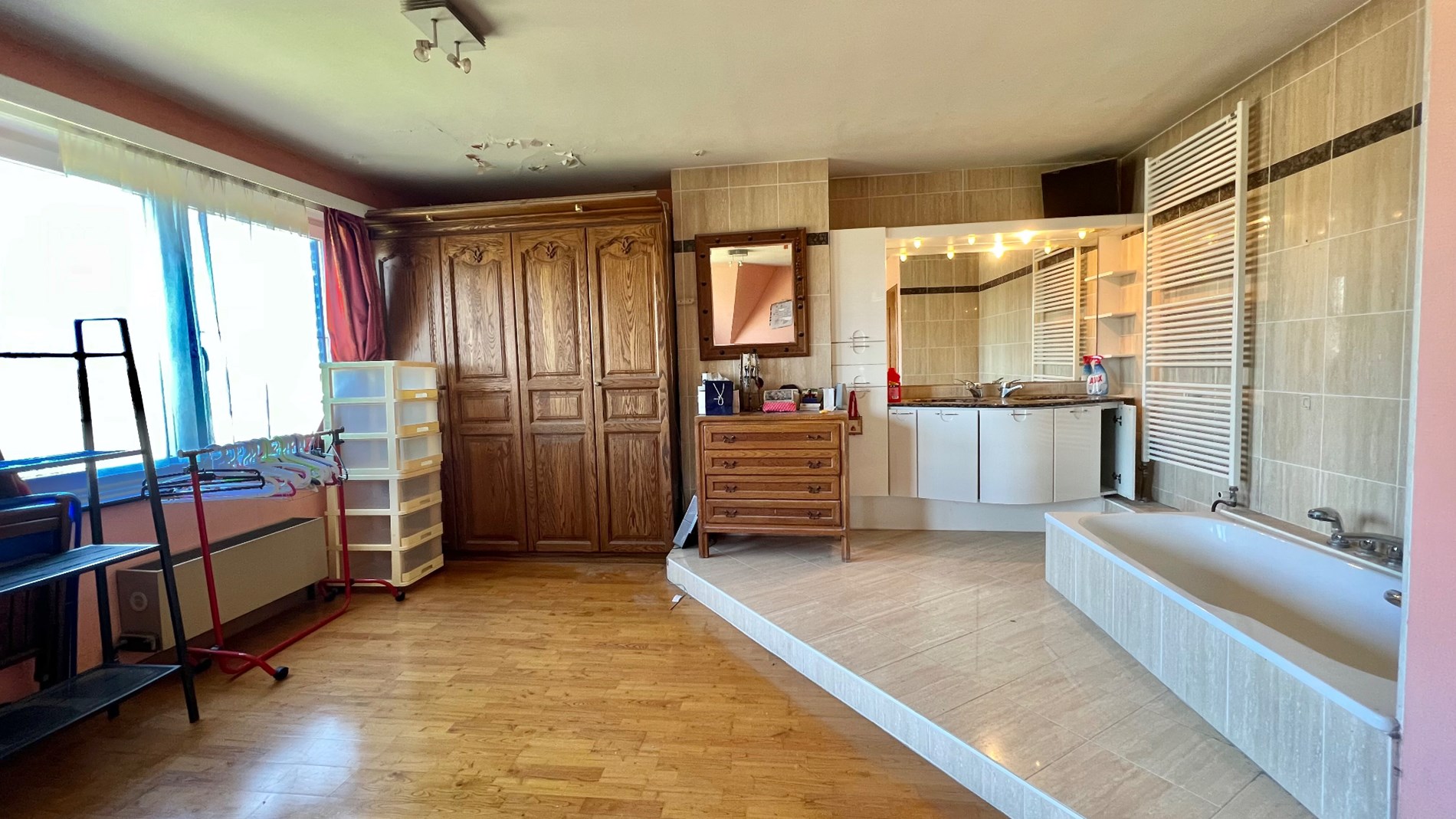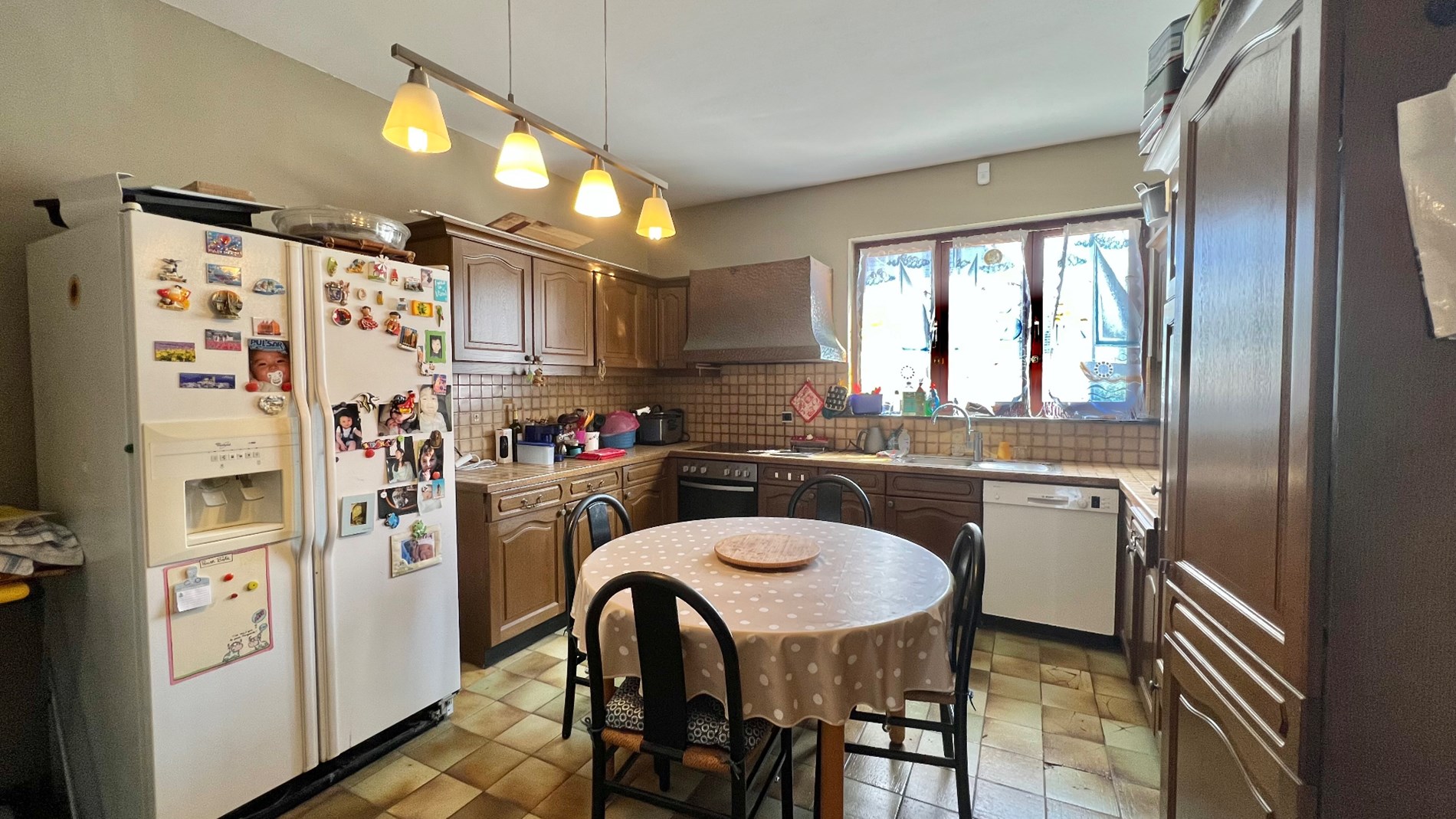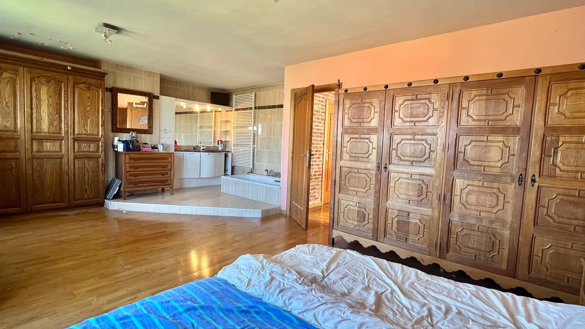 ONDER OPTE te renoveren eengezinswoning gelegen op wandelafstand van het centrum van Wemmel, openbaar vervoer, winkels, scholen en toeganswegen. De woning is gelegen op een perceel van 3a 50ca, met Westelijk georiënteerde tuin. De woning is ingedeeld als volgt: een ruime inkomhal met gastentoilet geeft toegang tot de leefruimte. Deze is ingericht in L-vorm met een open-haard en zicht op de tuin. De naastliggende keuken is toegankelijk via de woonkamer en de inkomhal. Op het gelijkvloers bevindt zich eveneens een bureauruimte (8,5m2). Op het verdiep bevinden zich 3 slaapkamers, waarvan 1 hoofdslaapkamer met eigen badkamer. Er is eveneens een tweede douchekamer met wc. Er is eveneens een zolder die niet ingericht is, een ruime kelder en een ruime garage achteraan de woning. algemene info: alarminstallatie aanwezig, dubbele beglazing hout en pvc; verwarming op gas; elektriciteit niet conform.